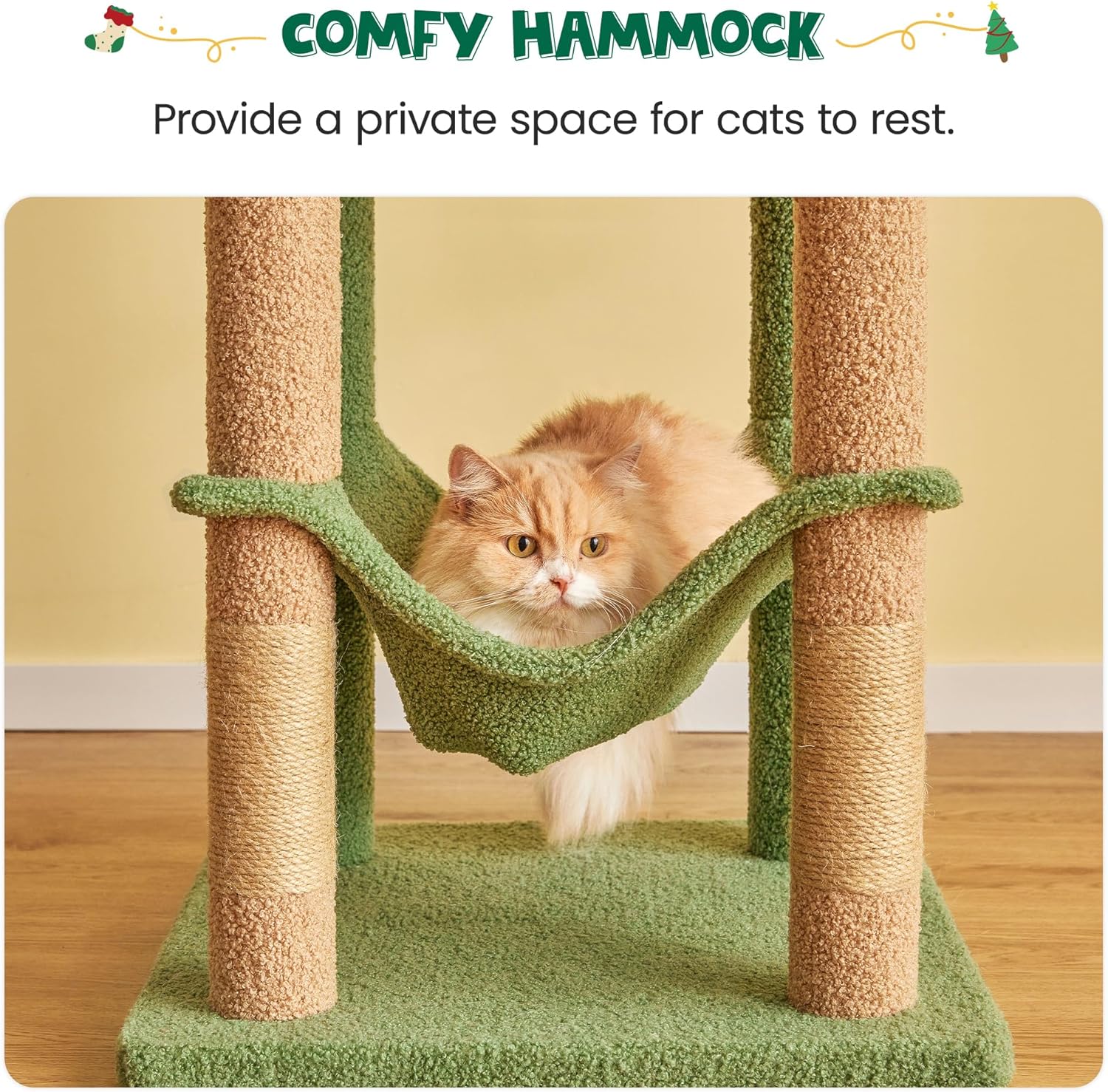 - 【PET-FRIENDLY, DURABLE DESIGN】- Made with natural particle boards, reinforced base plate, plush covering, and natural sisal scratching posts, this cat tree provides a safe, stable home and entertaining center for your furry friends.