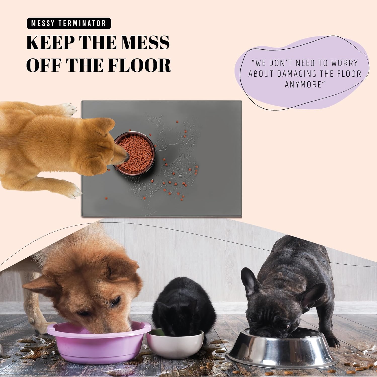 - Mess-Free Feeding: Tired of messy eaters? Our redesigned 23.5x15.5'' pet placemat for food and water, with a 0.63" high and firm raised edge, corrals kibbles and water for easy cleanup. No more spills, just happy feeding for your pets