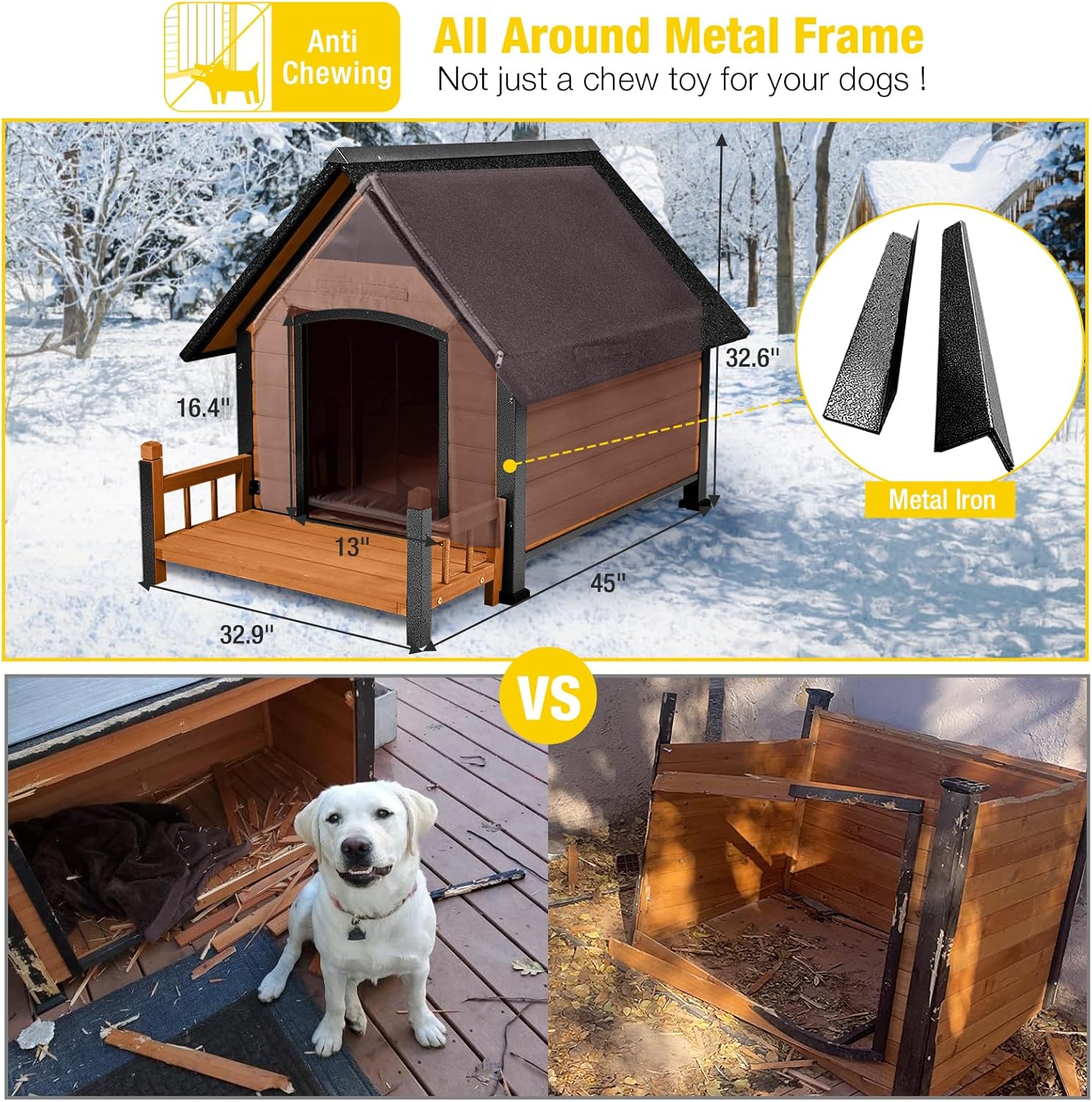 - Weather Resistant Off-ground Design: The wooden outdoor dog house is leak-proof and the waterproof base is elevated off ground. Keep your dogs protected in this easy-to-assemble heated, weather resistant, insulated dog shelter