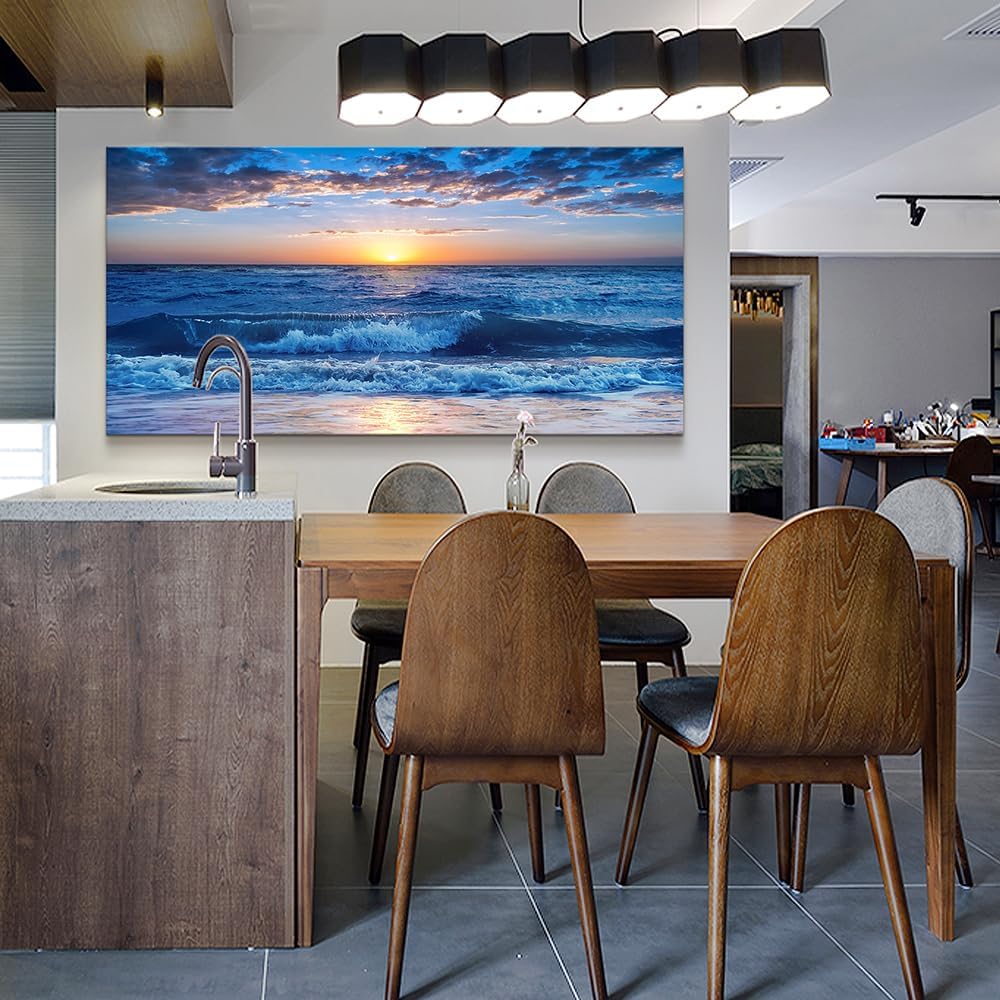 Lapremoly Large Wall Art For Living Room Canvas Wall Decor For Office Bedroom Wall Decorations Blue Ocean Beach Wall Painting Sunny Sea View Wave Wall Pictures Artwork Hotel Home Decor 30" X 60"