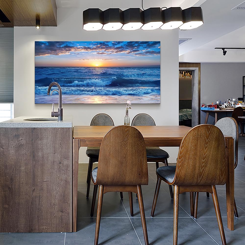Lapremoly Canvas Wall Art For Living Room Large Wall Decor For Bedroom Office Wall Decorations Blue Ocean Beach Wall Painting Sunny Sea View Wave Wall Pictures Artwork Room Home Decor 20" X 40"
