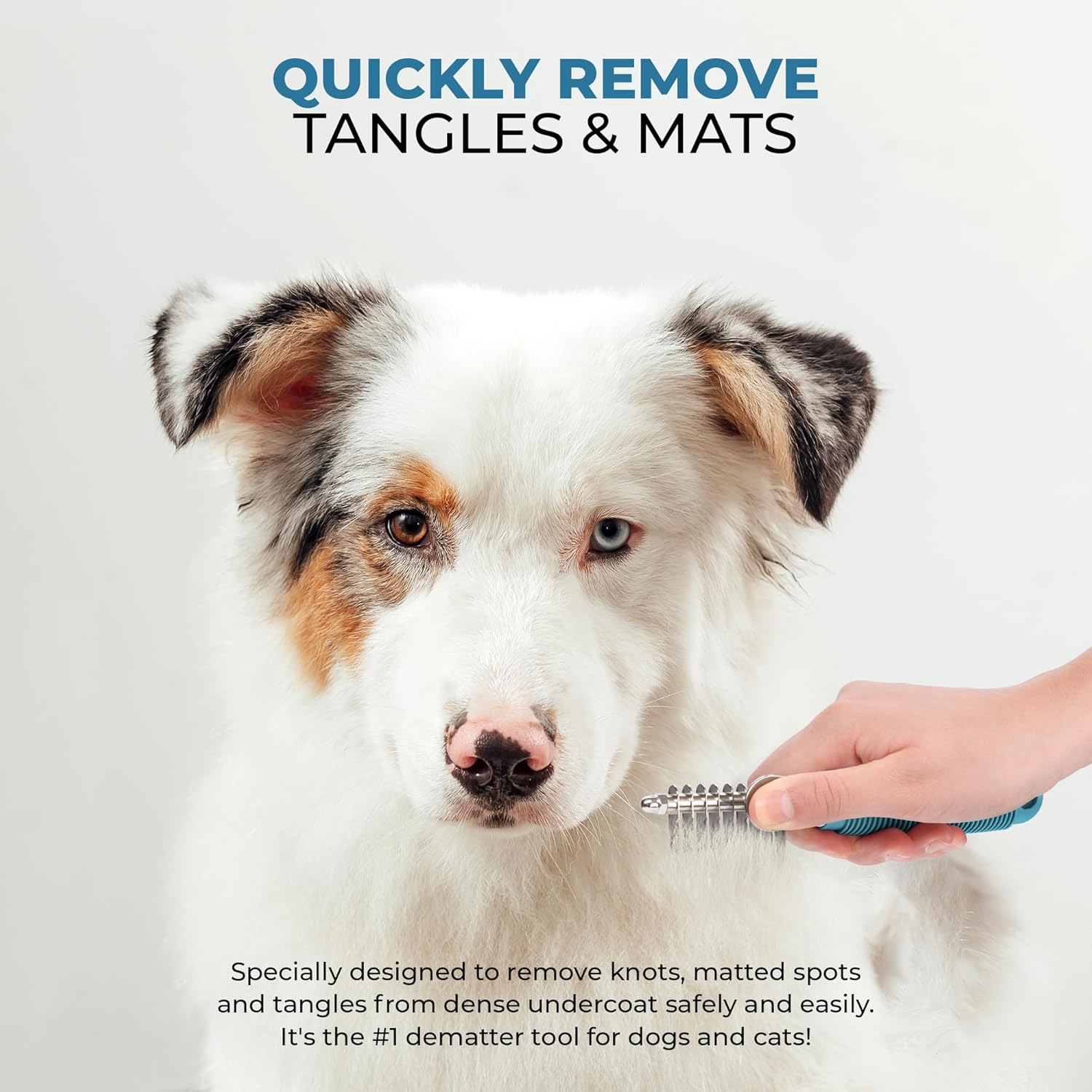 - LONG STEEL BLADES: Fitted with extra long 2.5” stainless steel dematting blades, this unique pet grooming tool reaches deep into thick fur to quickly break up knots, mats & tangles. It's the best grooming rake for undercoat brushing!