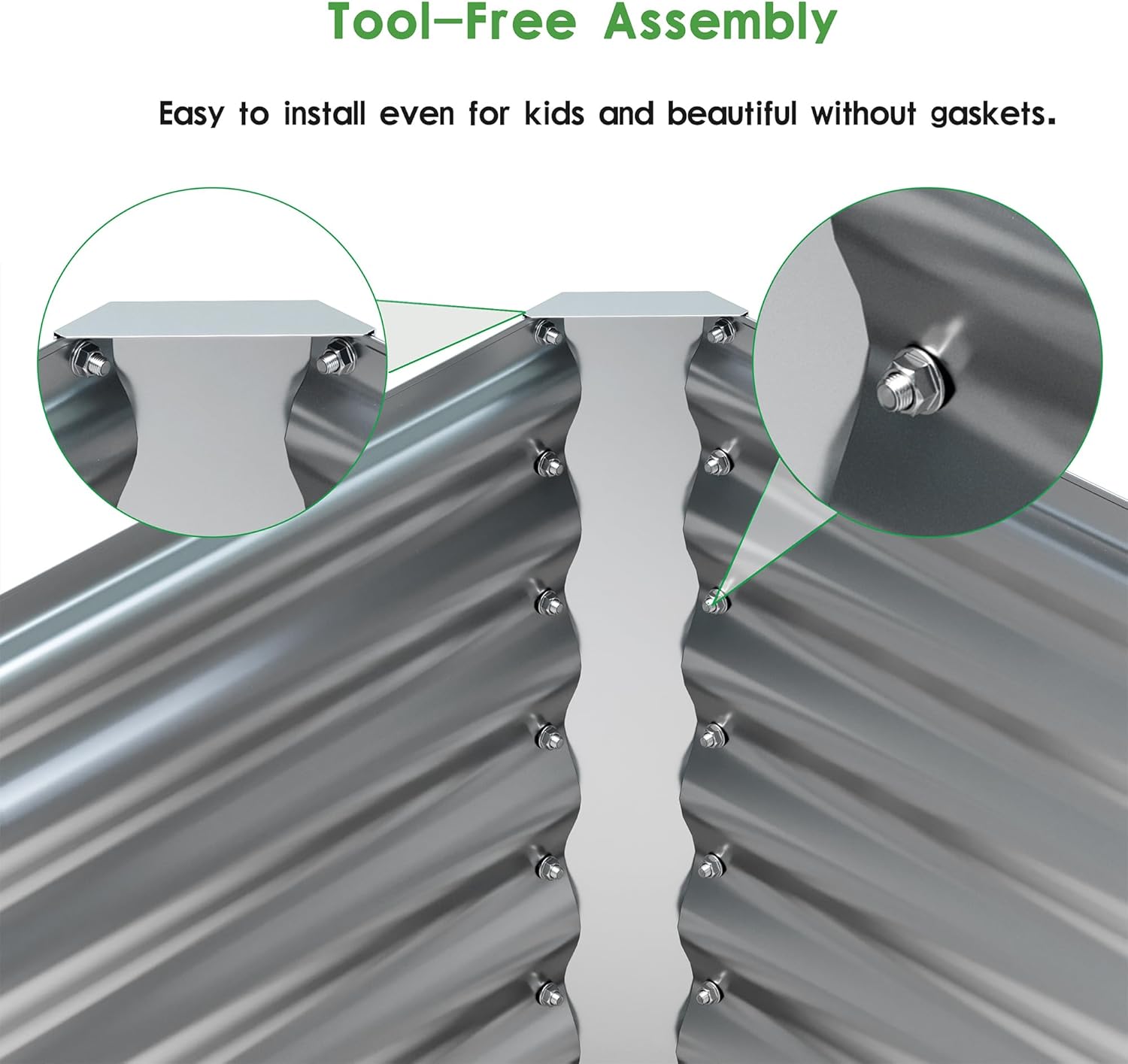- Size: 96"(L) x 24"(W) x 24"(H),Galvanized planter raised bed provide outdoor sufficient space to grow vegetables,flowers,galvanized garden bed