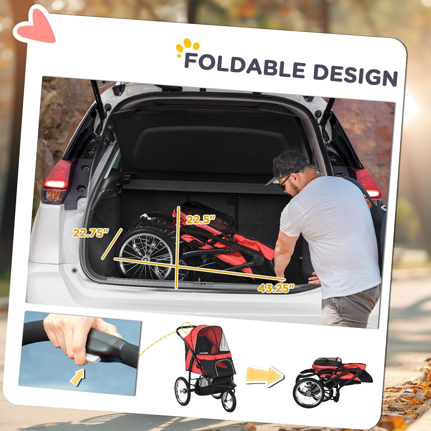 - Foldable Stroller: Storage of this pet stroller for cats and dogs can be done in a cinch; with a button collapse design, our dog stroller for small dogs and medium dogs can quickly fold to save space.