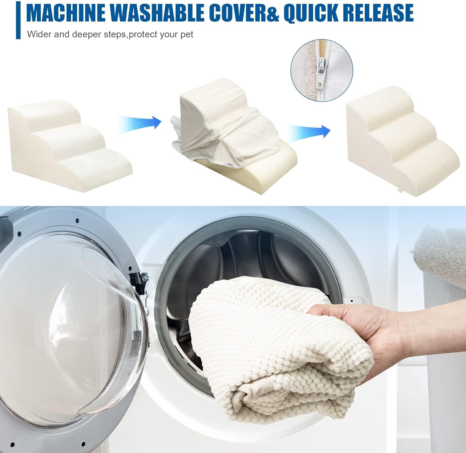 - Easy to Install and Clean: This pet step can be assembled and disassembled through simple steps. It is easy to clean. You can wash the removed cover by machine to keep the pet step clean and tidy