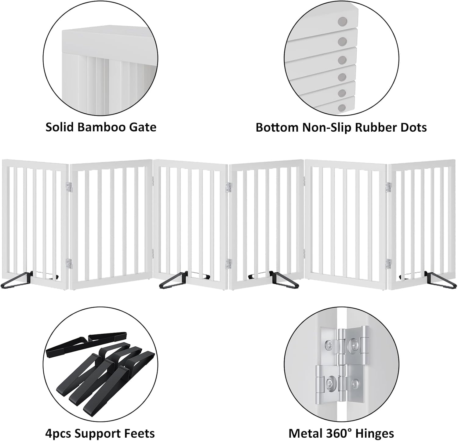 Wooden Dog Gate Freestanding Foldable 6 Panel Pet Gates Extra Wide Dog Gates for Indoor Doorways Stairs 24in Height Support Feet Included