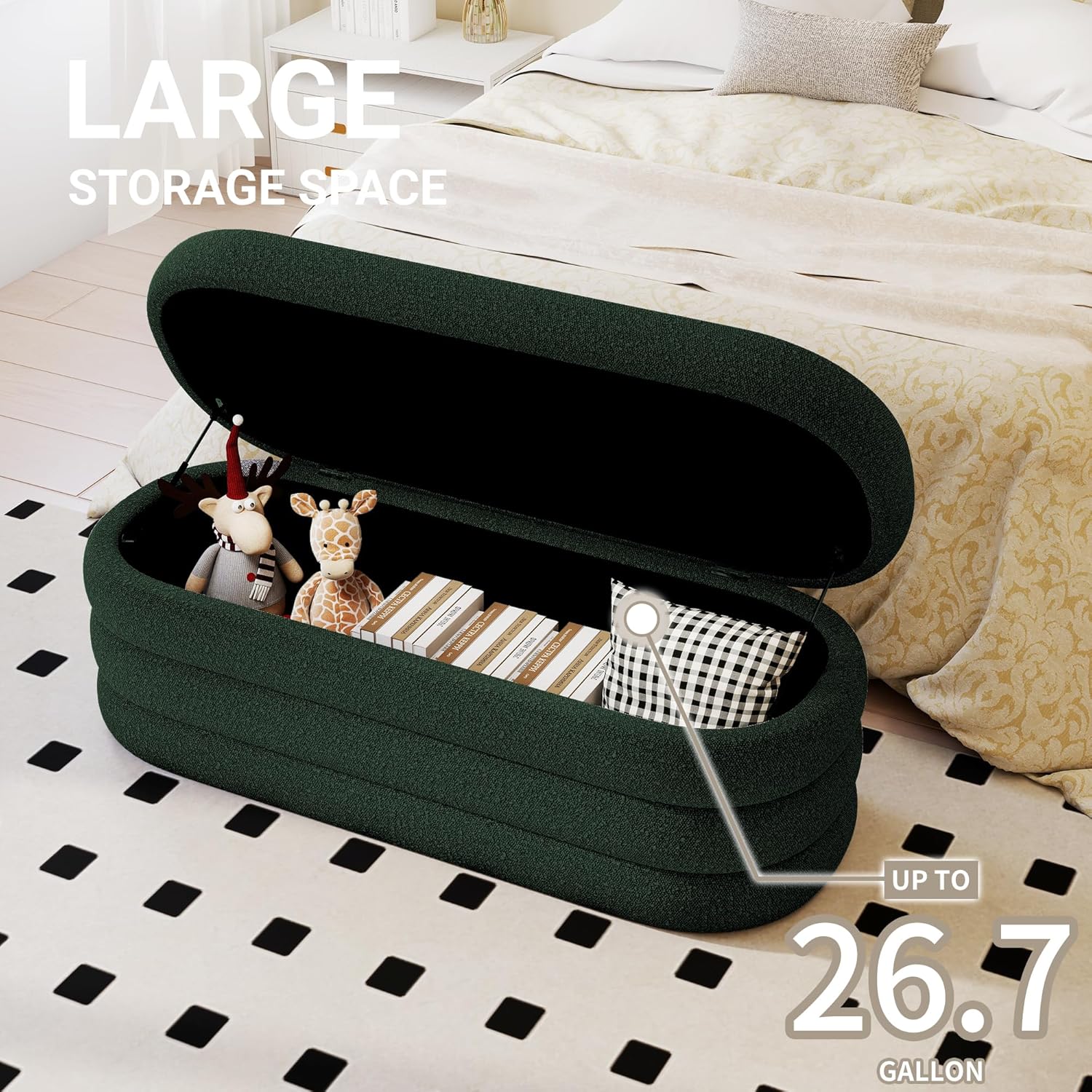 Storage Ottoman Bench 49.2 Inch Upholstered Fabric Storage Bench for Bedroom End of Bed Aesthetic Large Oval Ottoman for Living Room(Dark Green)