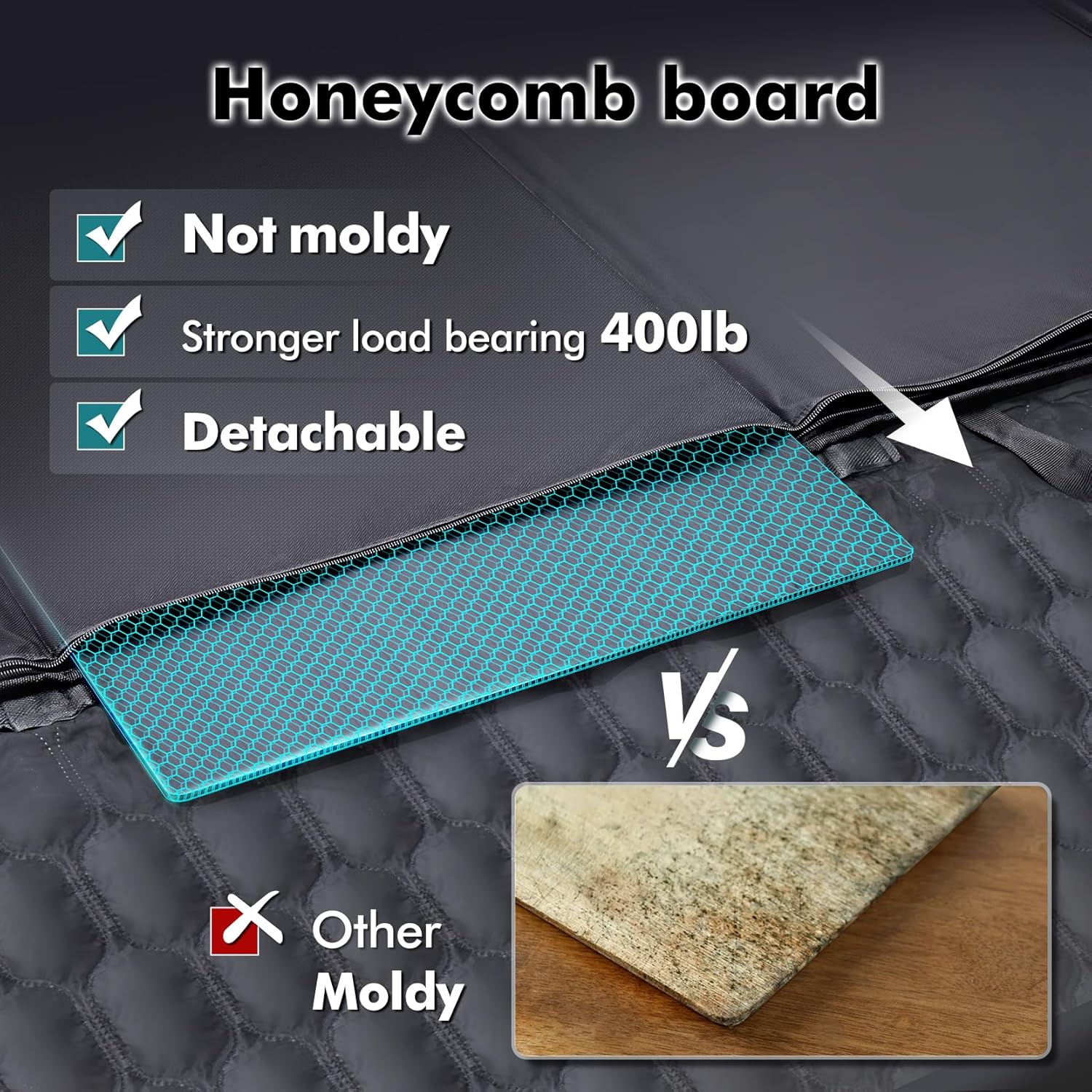 - Upgraded Removable Honeycomb Board Platform Support 400lbs: The inside layer of our dog seat cover for back seat uses 3 pieces of thick Honeycomb boards, that can support all breeds of dogs without collapsing, holding up to 400 pounds.The honeycomb boards is more sturdy than wood boards.Removable feature for easy machine cleaning of the dog car seat cover