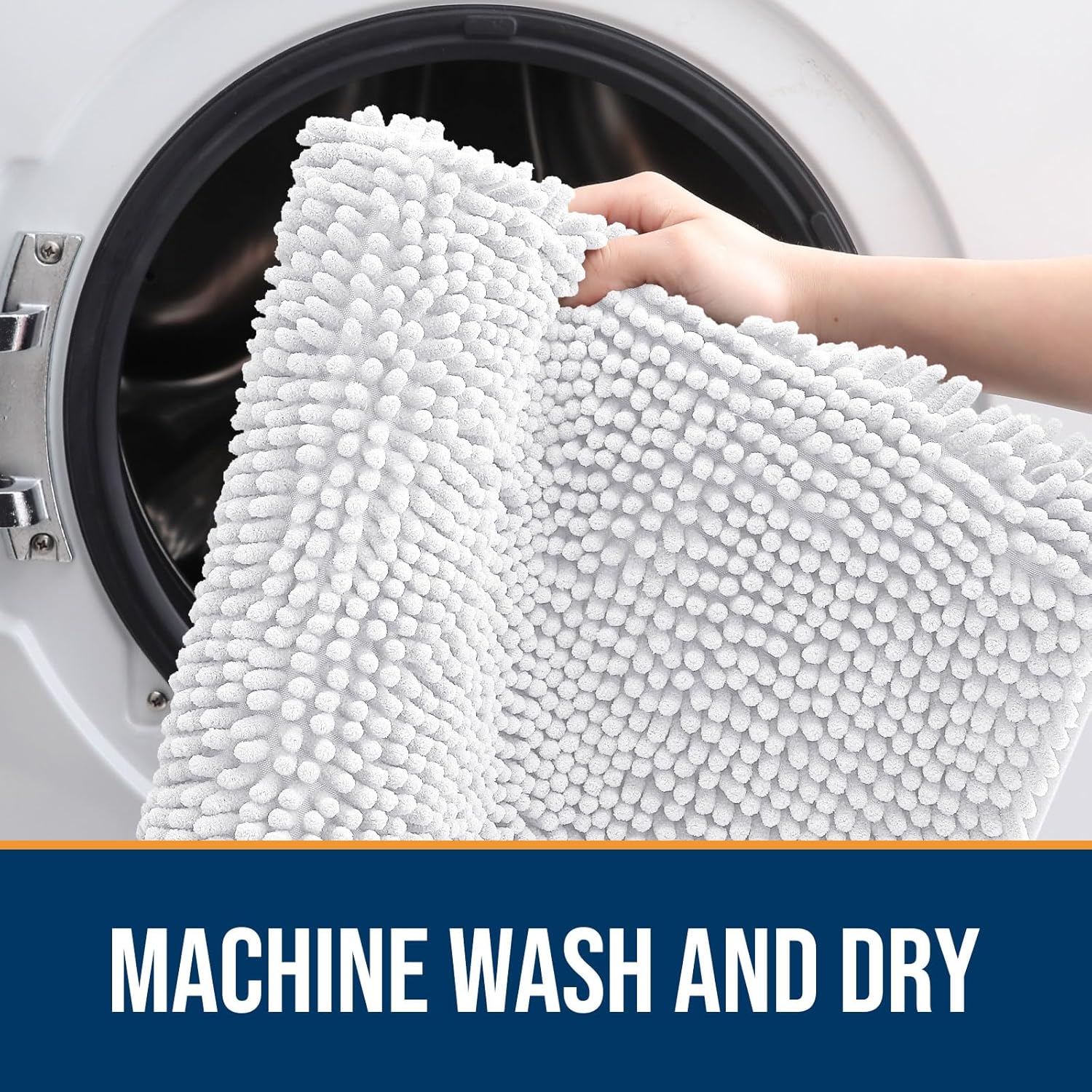 OLANLY Dog Door Mat for Muddy Paws 59x24, Absorbs Moisture and Dirt, Absorbent Non-Slip Washable Doormat, Quick Dry Chenille Mud Mat for Dogs, Entry Indoor Entryway Carpet for Inside Floor, White