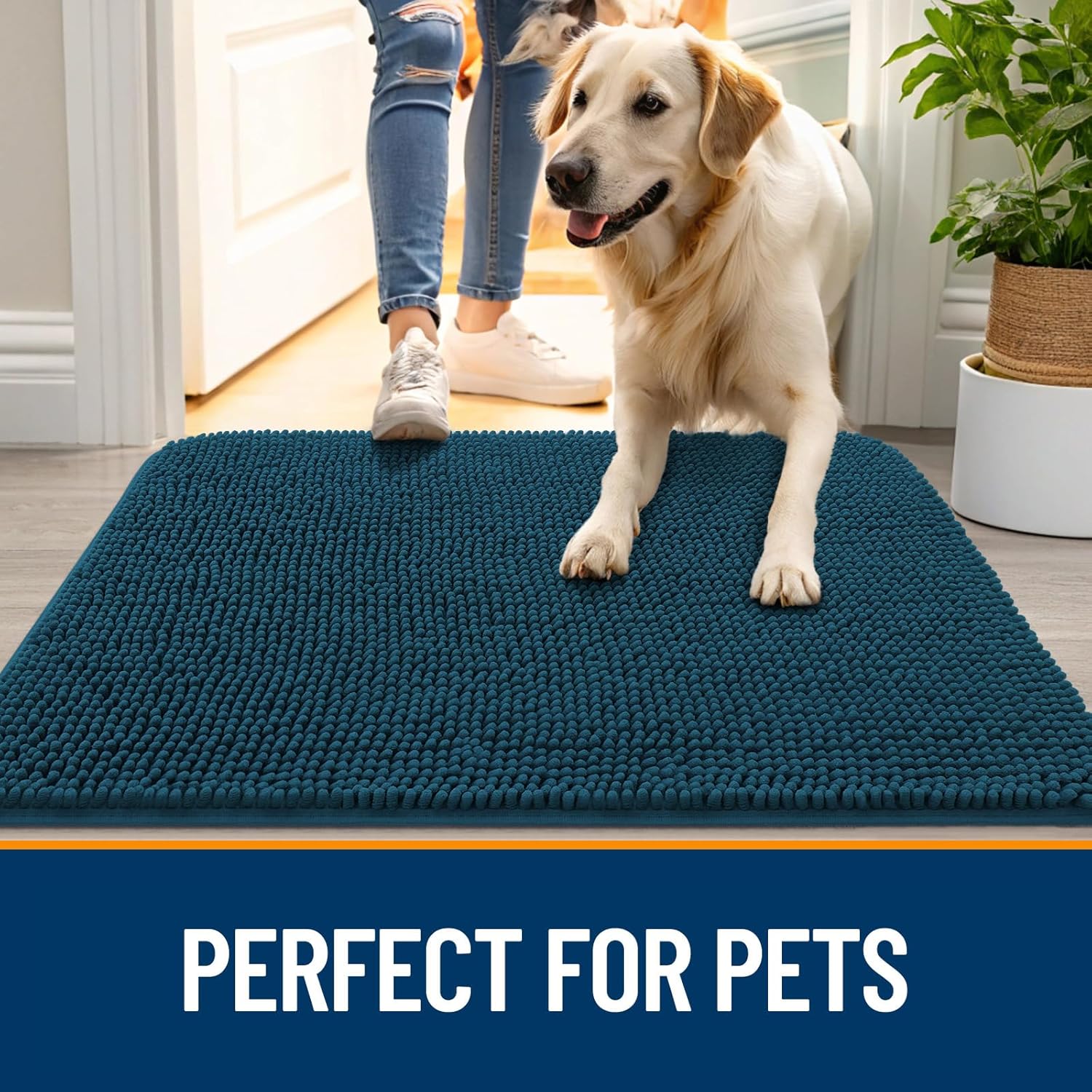 OLANLY Dog Door Mat for Muddy Paws 24x16, Absorbs Moisture and Dirt, Absorbent Non-Slip Washable Doormat, Quick Dry Chenille Mud Mat, Entry Indoor Entryway Carpet for Inside Floor, Atlantic Blue