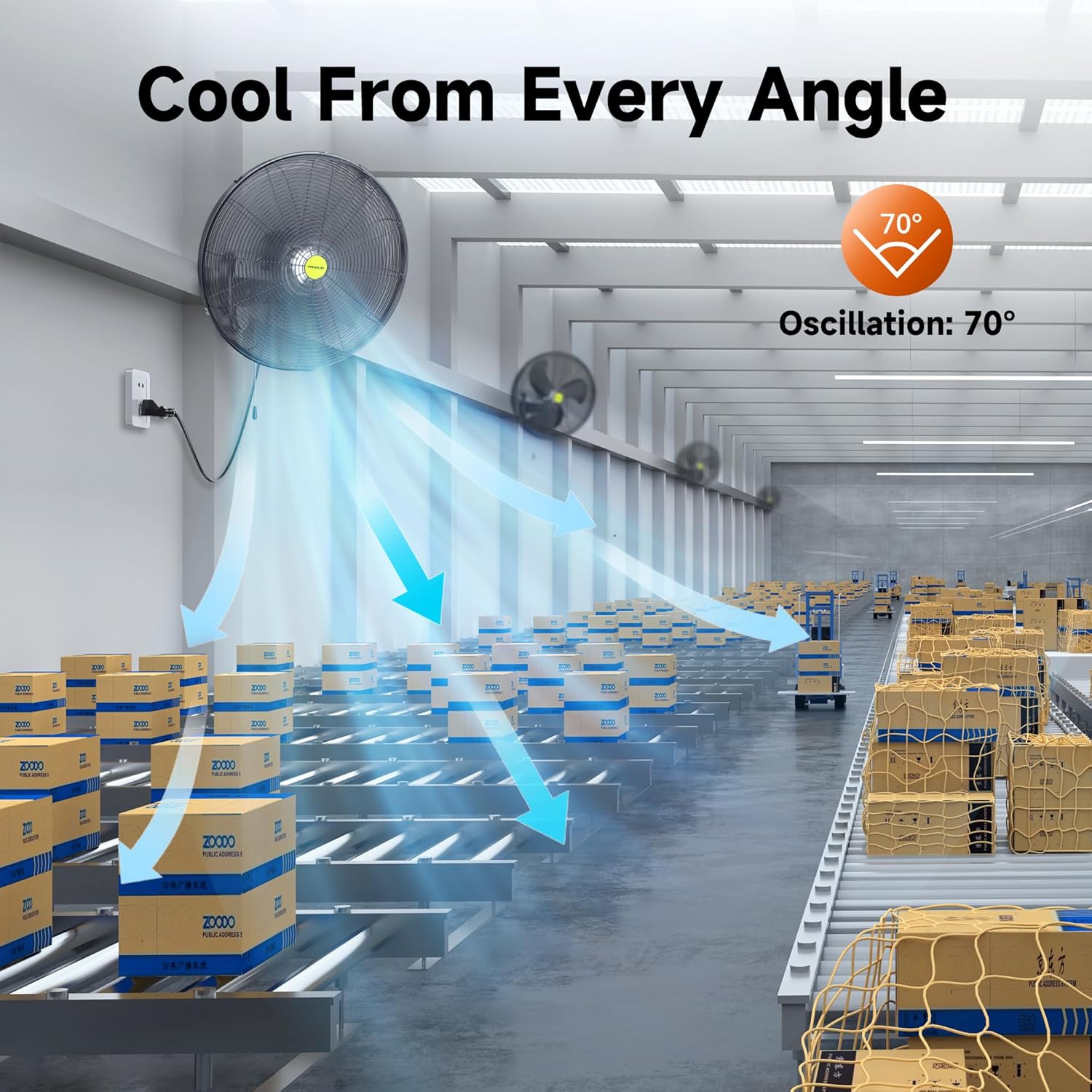 - 【Space-Saving Design】 With its wall-mounted installation, our Industrial oscillating wall mount fan saves more space than other floor-standing industrial fans. Enjoy optimal airflow without taking up space.