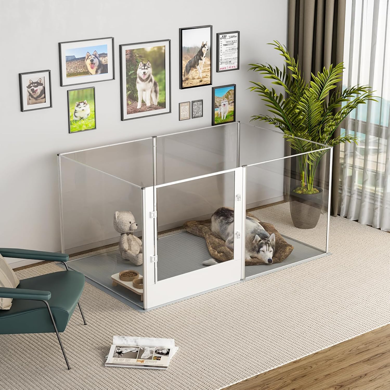 - Clear Acrylic Fence Design - Crystal-clear acrylic dog fence playpen enables you can interact with your pets closely, 360° high transparency and wide vision, it’ll relieve your pets from anxiety, they also make sure you are by their side, equipped with a door for dog mom/ pets to come and go easily, so this is a unique gift for your loved friends, get this fence in the room, instantly improve the overall interiors