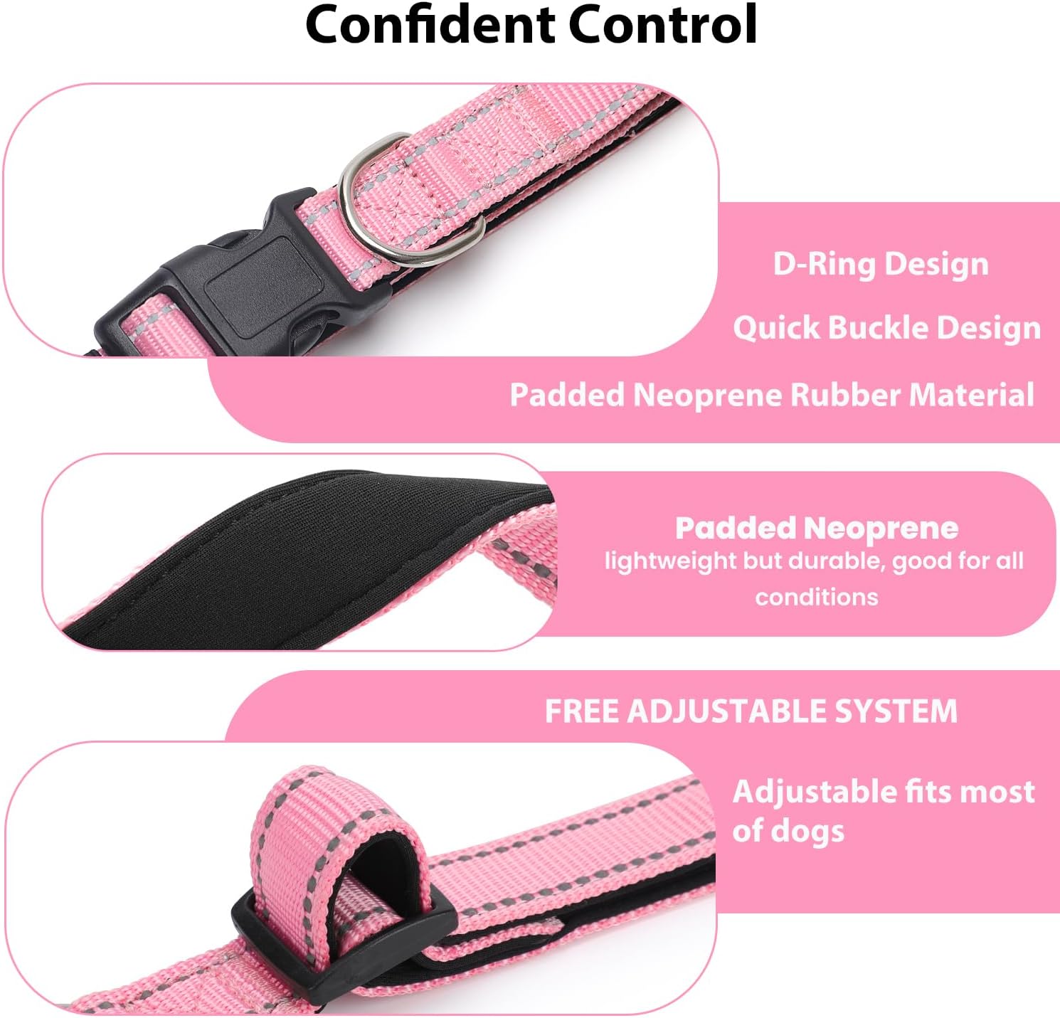 Reflective Dog Collar Padded with Soft Neoprene Breathable Quick Release Basic Dog Collars for Puppy Extra Small Dogs Pink Girl