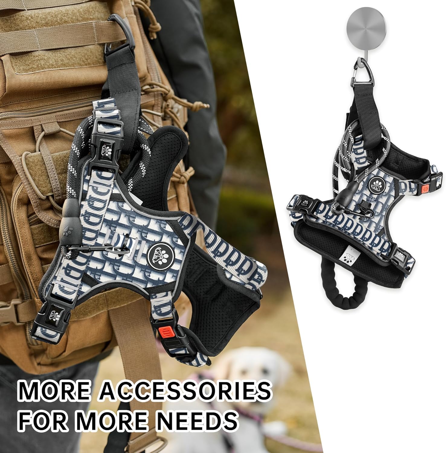 - 【SELECTED ACCESSORIES】 Our no pull harness includes 1 professional dog leash & 1 retractable seatbelt & 1 storage strap, which makes walking dogs a pleasure. We provide several size harnesses for small dogs to large dogs, more details please refer to the sizing chart