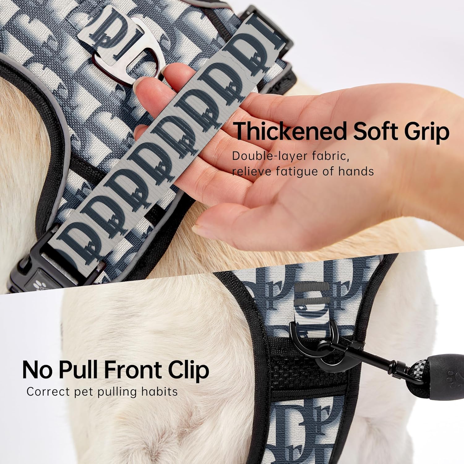 - 【SAFETY DETAILS】 Front and Rear Clip Design - One front clip for pull-free control or dog training and the other rear clip for casual walking or jogging. In addition, the reflective strip design allows your dog to walk freely at night and prevent collisions