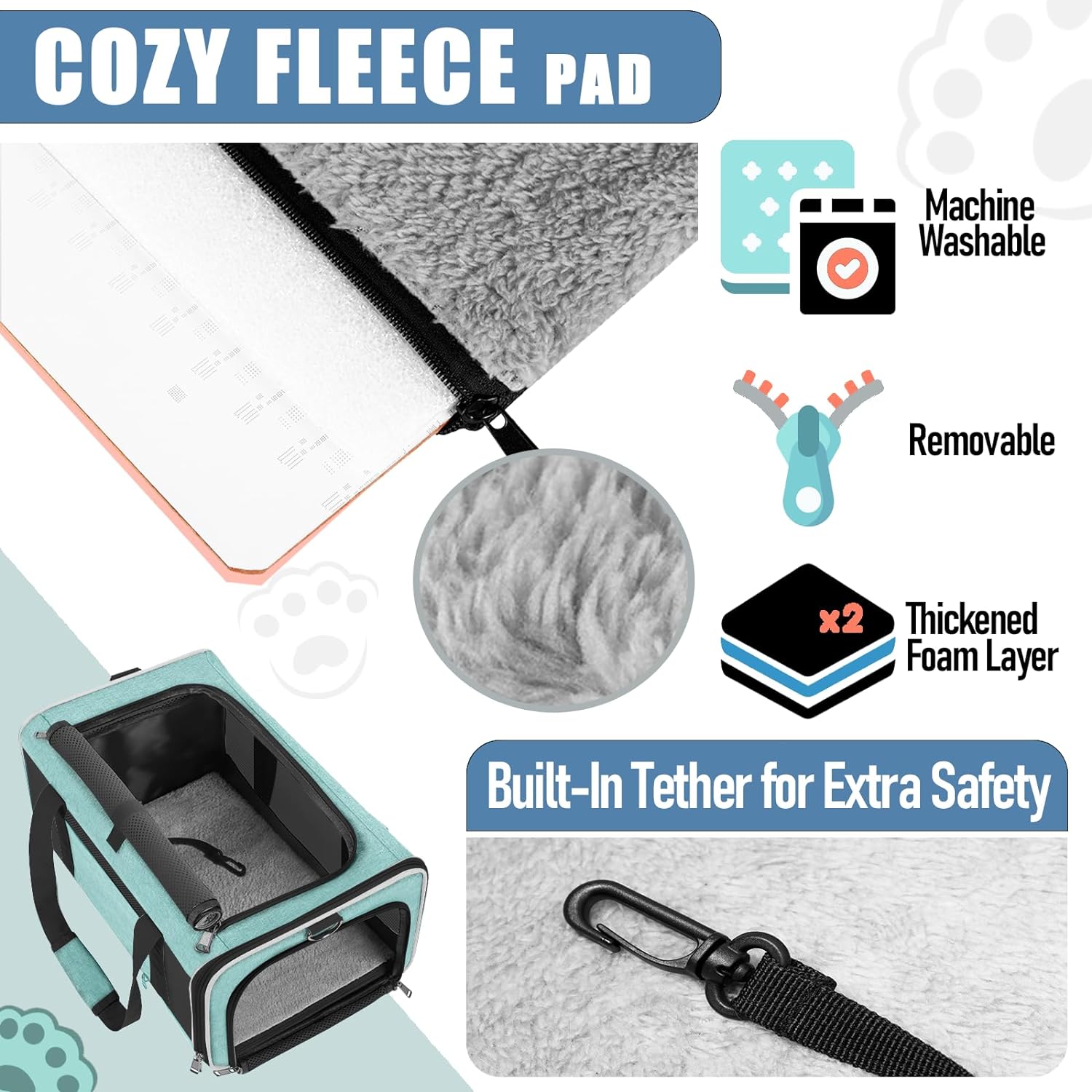 Soft Cat Carrier Large Cat 20 lbs/Kitty Cat Travel Crate for Pet Top Load/Small Dog Sturdy Transport Fabric Carry Bag 10 Pounds/Yorkie Kennel with Pocket Teal Aqua