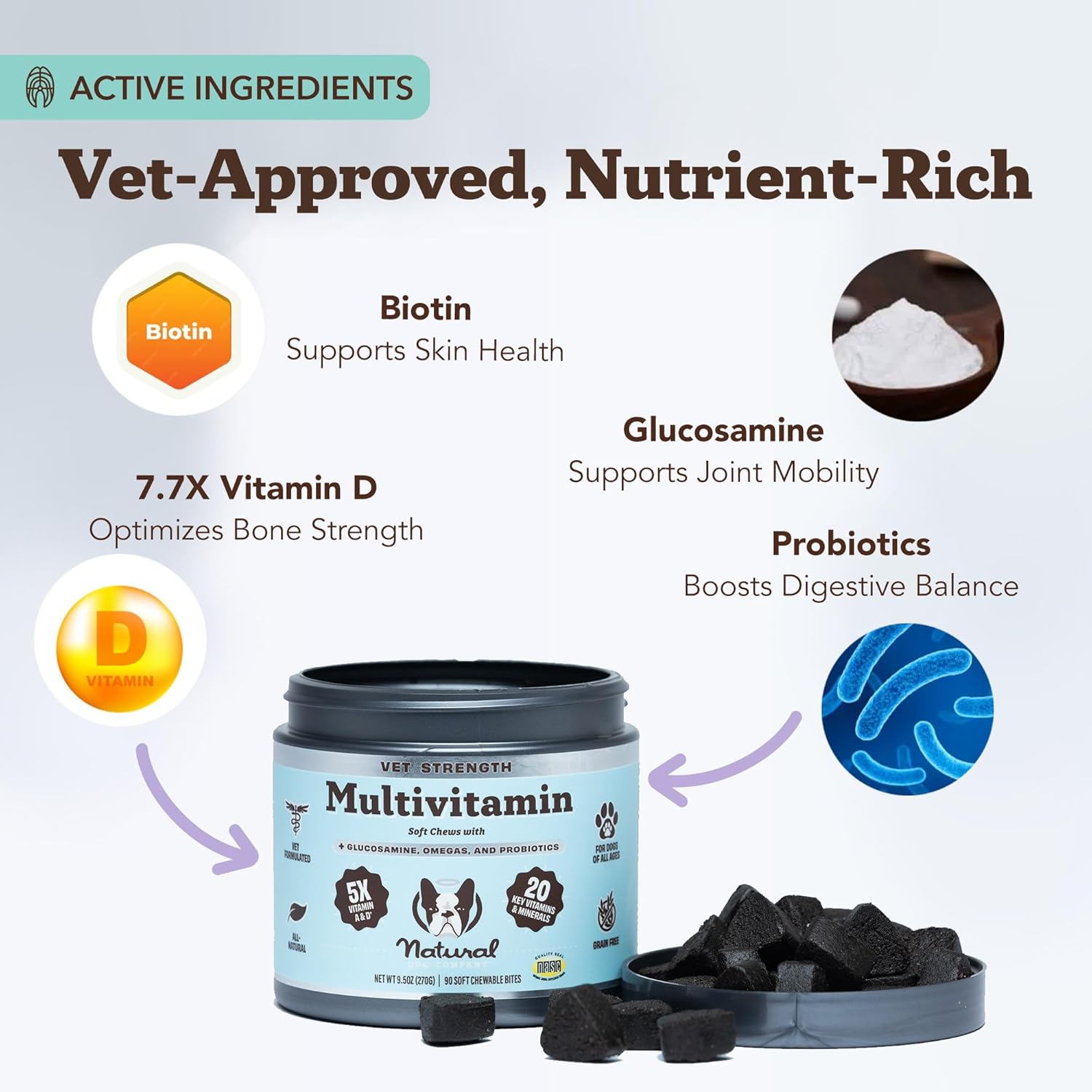 Natural Dog Company Vet Strength Multivitamin Chews for Dogs – Glucosamine, Omega-3 & Biotin for Dogs, Skin & Coat Health, Digestive Health, Immune Support Supplement, Advanced Formula, 90 cnt
