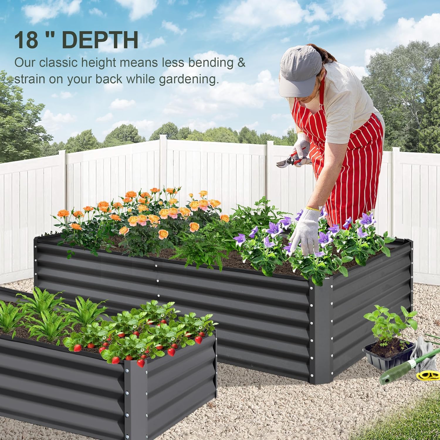 - Longer Growing Depth: Deeper growth space minimizes bending, fostering healthier roots. With 1.5 inches of depth, it accommodates up to 342 gallons of soil, ideal for medium to deep-rooted plants like broccoli and beans.