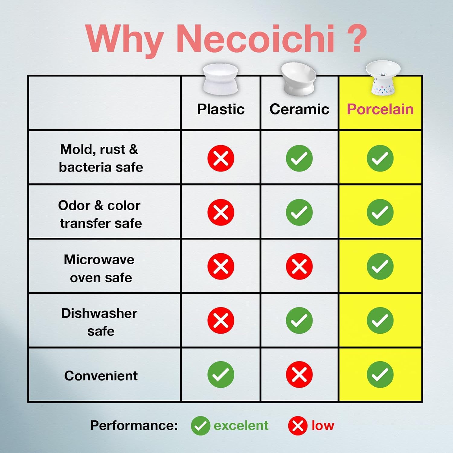 - Our first tilted bowl is joining Necoichi’s Raised Food Bowl lineup! Food stays centered, and the tilted lip makes it easier for your cat to eat without whisker or neck fatigue from the perfect height.