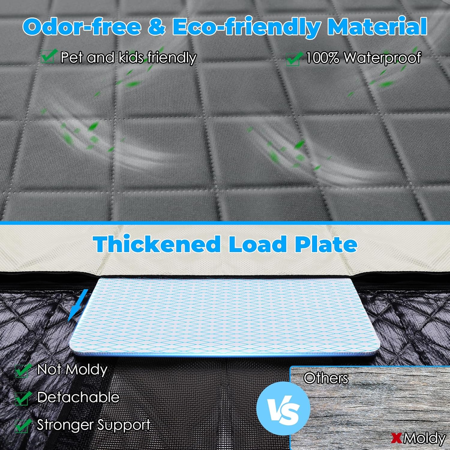 - No Smell Material: The dog car seat cover for back seat without terrible smell is friendly for pets and children. In an enclosed car space, no terrible smell is also important to keep you focused and driving safely, something that others' dog covers on the market ignore. The thickened PP hollow board plate is more durable than others' wood base