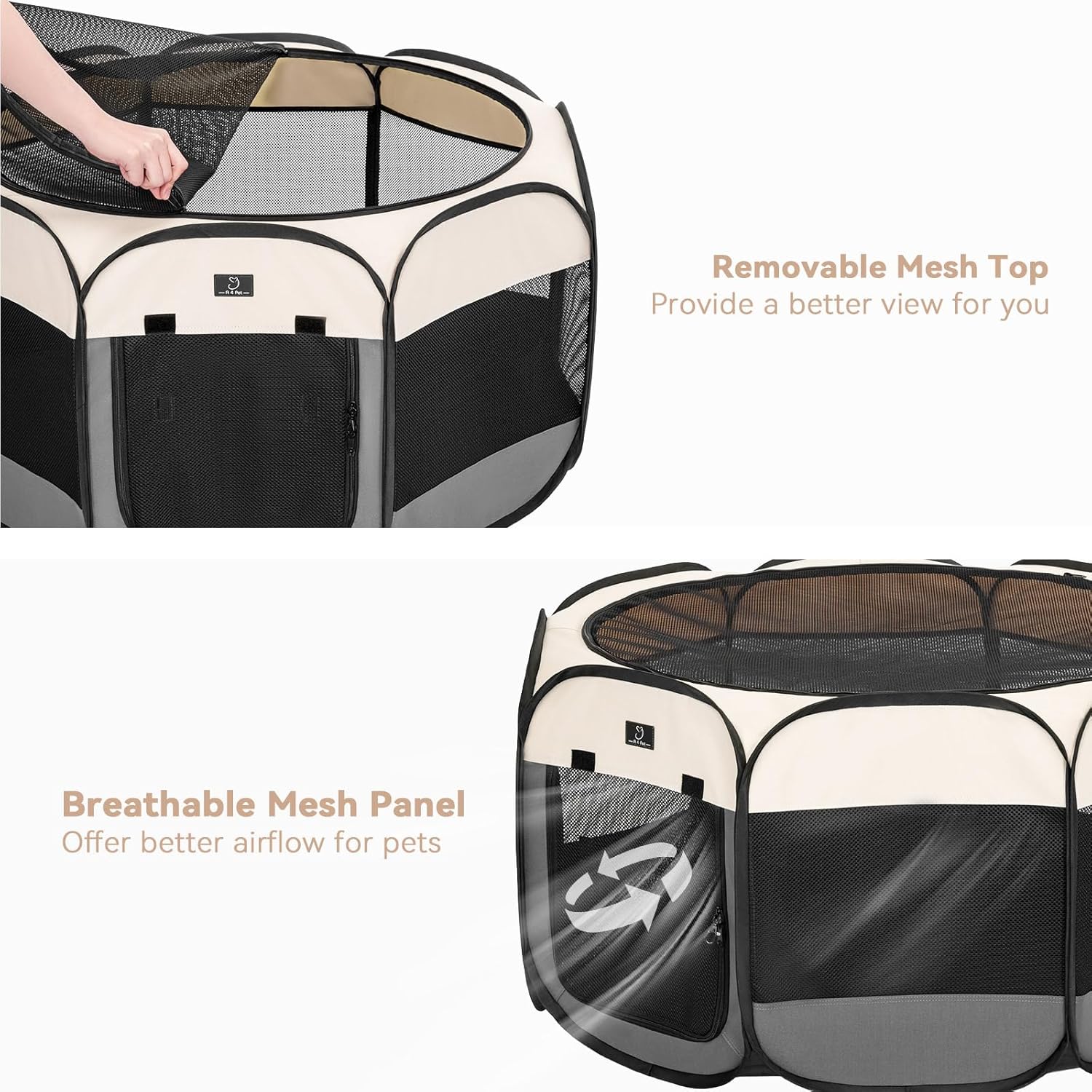 - Enhanced Ventilation with Mesh Panels: Designed with 8 breathable mesh panels, the playpen promotes airflow to keep your pet cool and comfortable. These panels also provide visibility, allowing you to keep an eye on your pet while they play or rest inside.