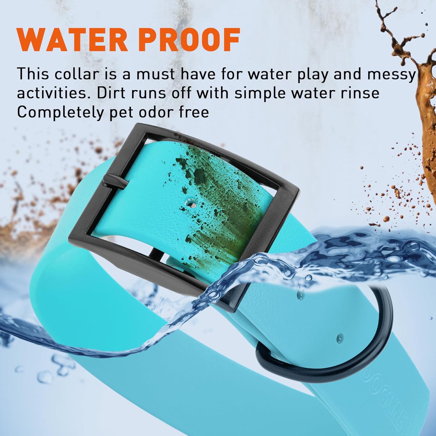 Dogline Biothane Waterproof Dog Collar Strong Coated Nylon Webbing with Black Hardware Odor- Proof for Easy Care Easy to Clean High Performance Fits Small Medium or Large Dogs, Sky Blue