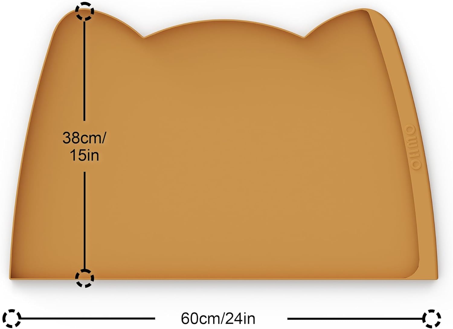 OHMO Dog Food Mat(Honey, 24 * 15'') w/Residue Collection Pocket Silicone Pet Feeding Mat for Floor High Edges Anti Spills Waterproof Cat Water Bowl Tray, Easy Clean Placemat