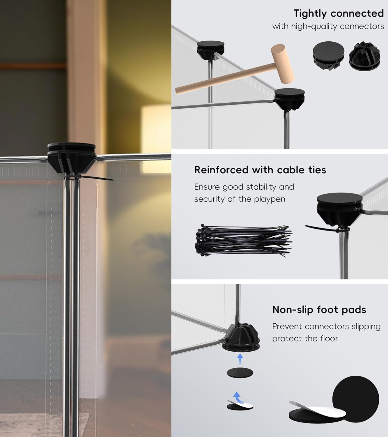 - ๐๐ญ๐๐๐ข๐ฅ๐ข๐ญ๐ฒ ๐๐ง๐ ๐๐ซ๐จ๐ญ๐๐๐ญ๐ข๐จ๐ง: Equipped with 84 nylon straps to securely fasten the small pet fence, and 24 anti-slip mats to prevent the fence from sliding on the floor, providing a stable play area for your pets.
