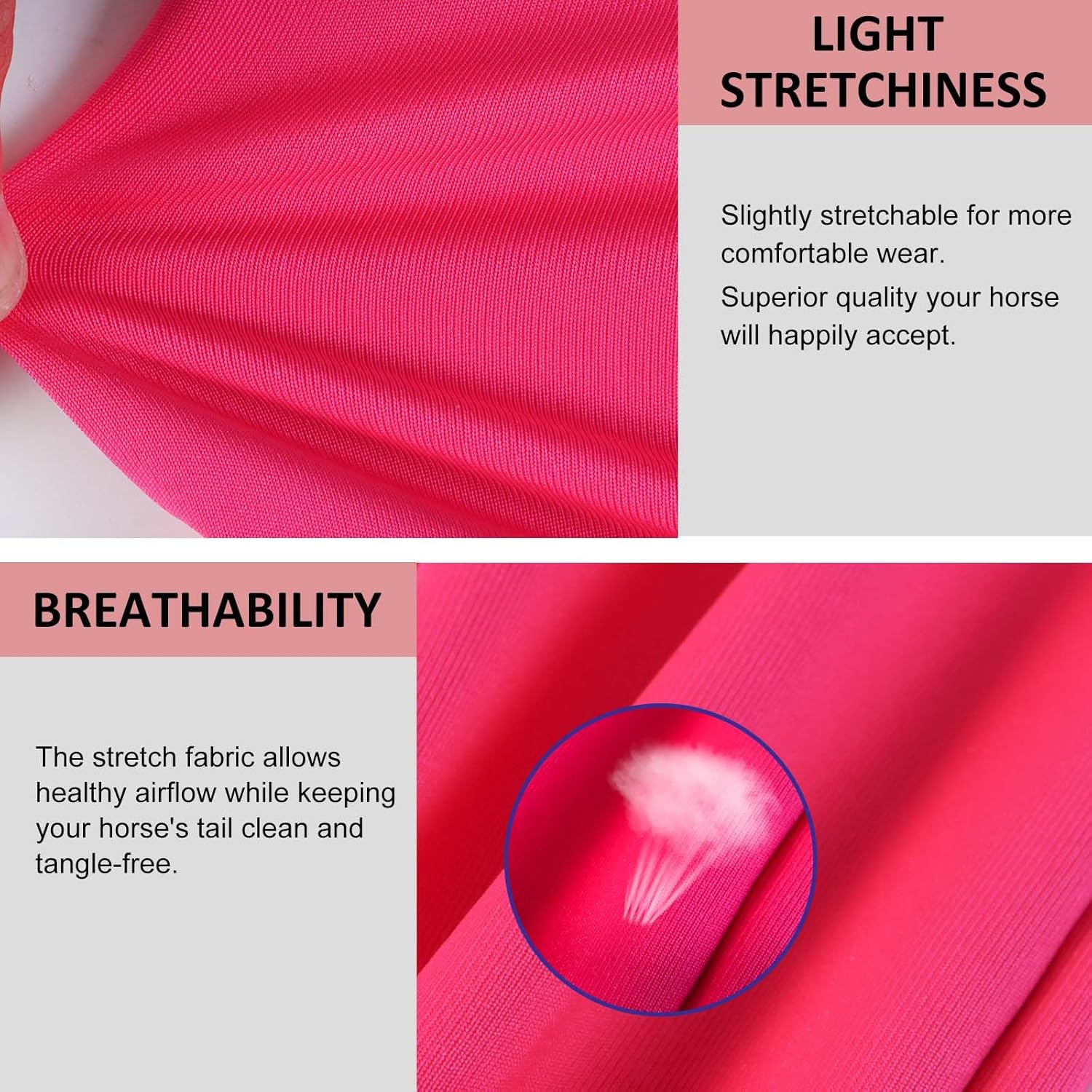 - Breathable: High level of breathability allows healthy airflow while keeping your horseās tail clean, tangle-free, and lasts in all weather conditions.
