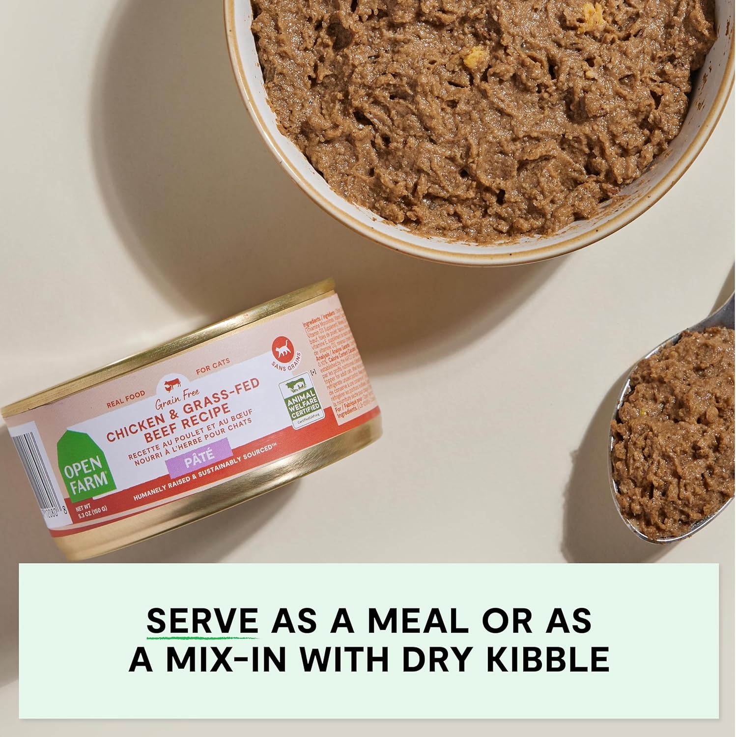 Open Farm Canned Cat Food, Paté for Complete & Balanced Nutrition, Grain-Free and Legume-Free Wet Cat Food, Chicken & Beef Recipe, 5.3oz Cans (Case of 12)