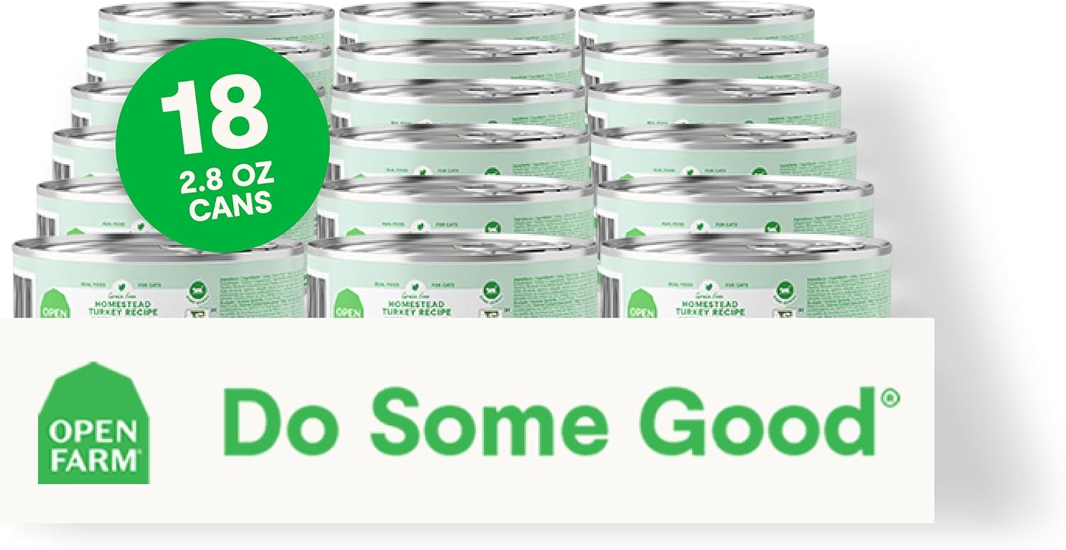 Open Farm Canned Cat Food, Paté for Complete & Balanced Nutrition, Grain-Free and Legume-Free Wet Cat Food, Homestead Turkey Recipe, 2.8oz Cans (Case of 18)