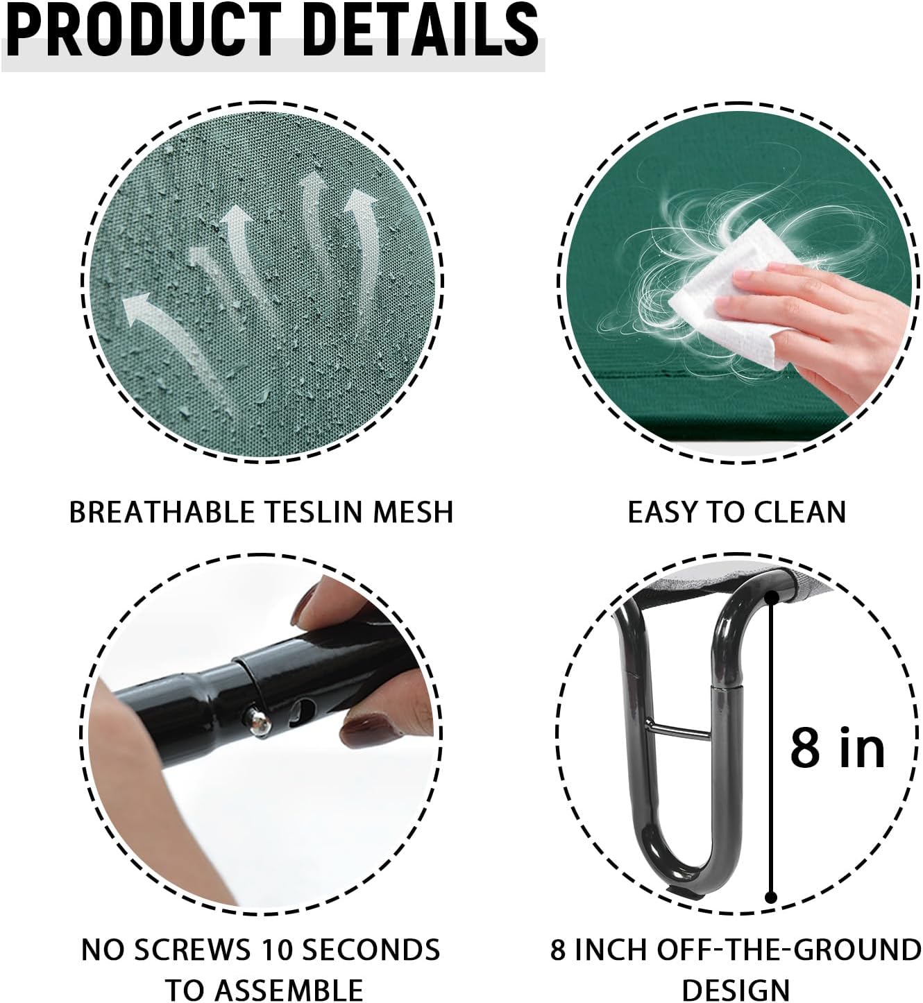 - No Screws & Quick Assembly: It’s easy to assemble and just as easy to clean, with surfaces that don’t cling to dirt and pet hair. Give your furry baby the raised bed he deserves with Pettycare Steel-Framed Elevated Dog Bed