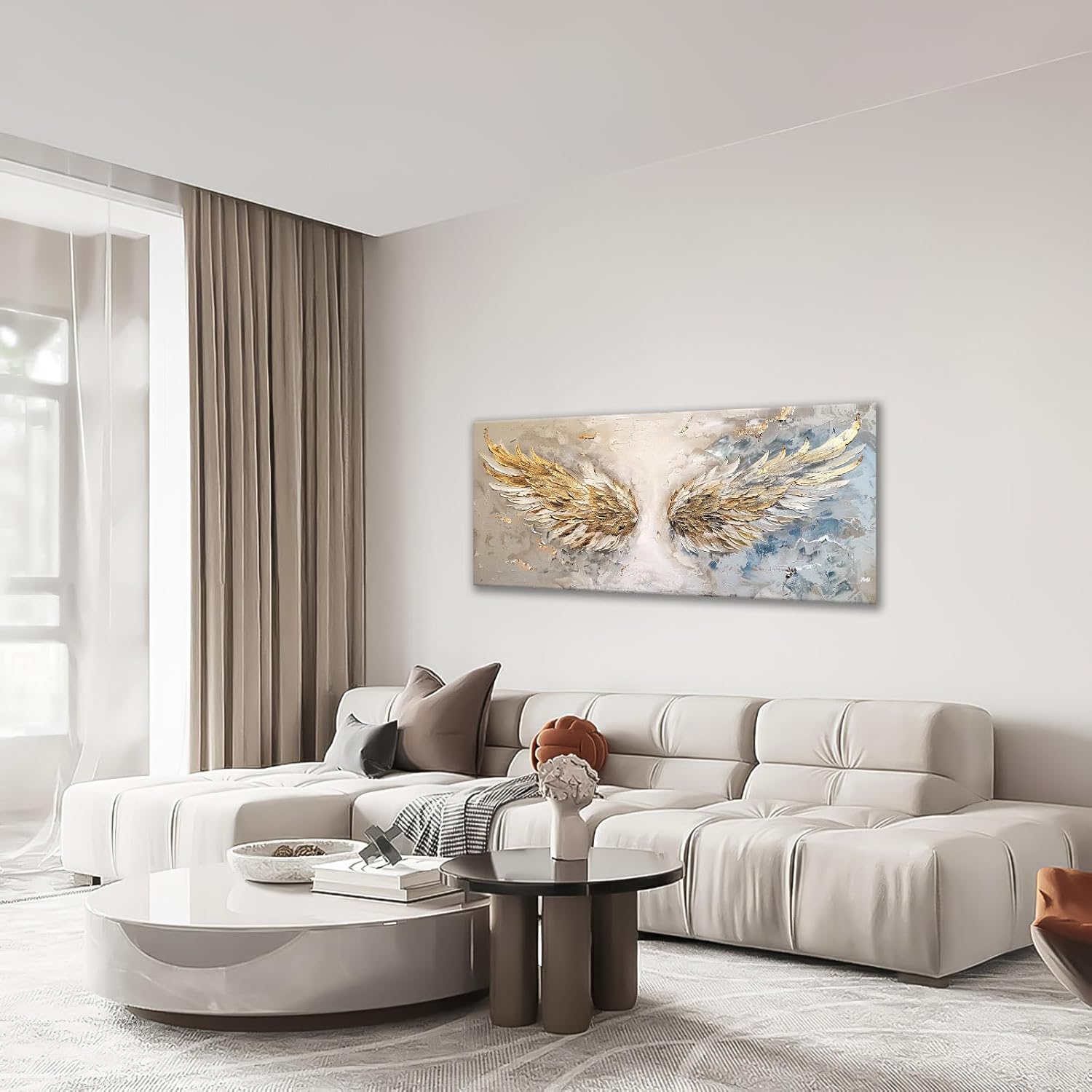 Large Angel Wings Wall Art Golden Abstract Extra Canvas Living Room Pictures Framed Prints Aesthetic Oversize Wall Decor Big Painting Artwork for Bedroom Dining Office Home 60"x30"