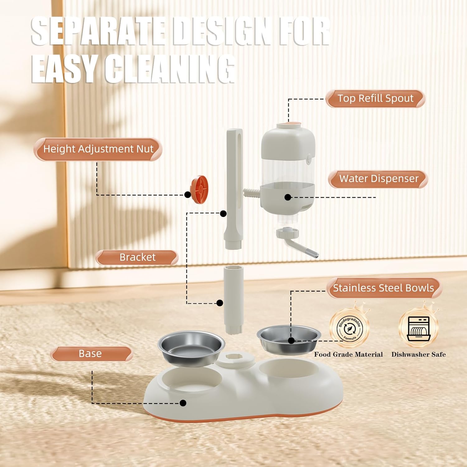 - 【Eco-friendly Material】MITOCAPY dog bowls are made of eco-friendly food-grade quality PC material, which is very safe for your pets. All parts can be easily disassembled and both two stainless steel dog bowls and ceramic dog bowls can be washed in the dishwasher.