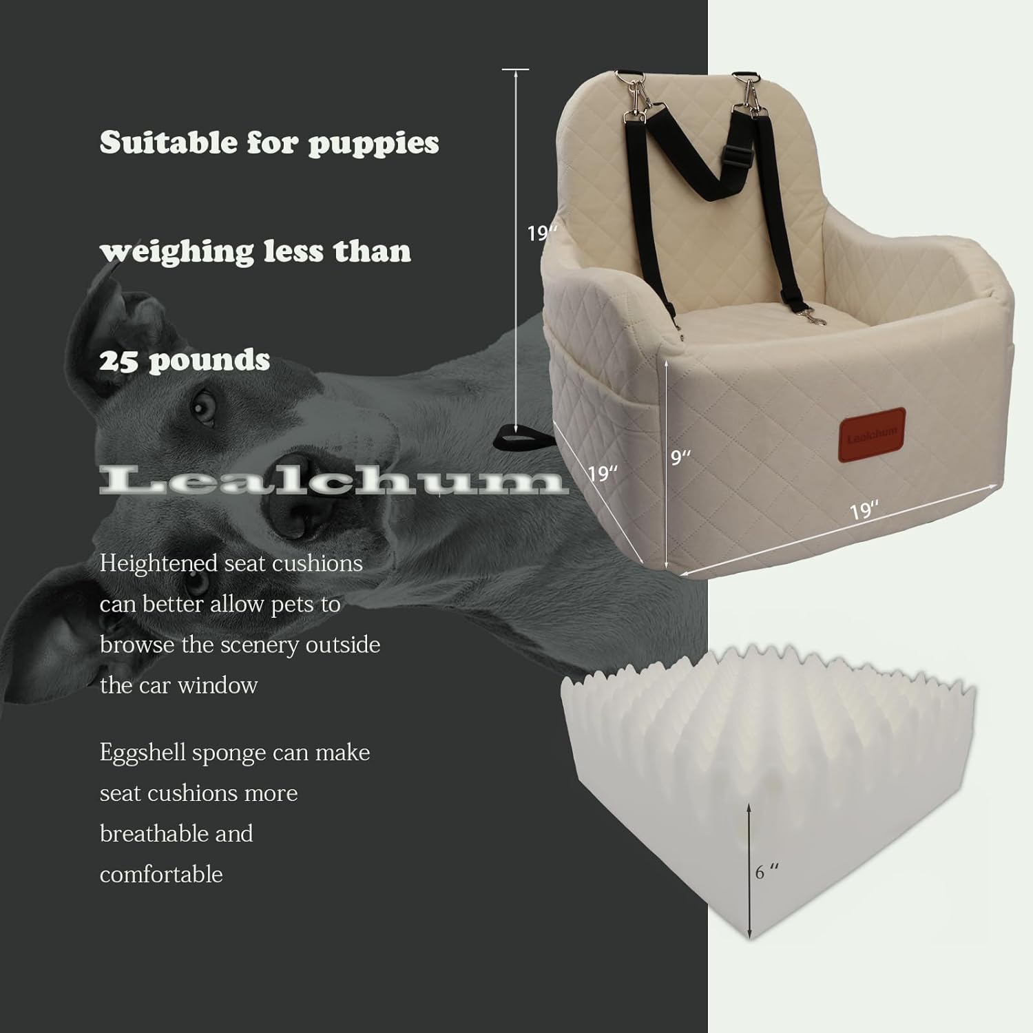 - Comfort: The Lealchum dog booster car seat features an ultra-soft surface material and is cushioned with soft memory foam,The 15 cm high eggshell sponge pad at the bottom enables pets to enjoy the outside scenery comfortably