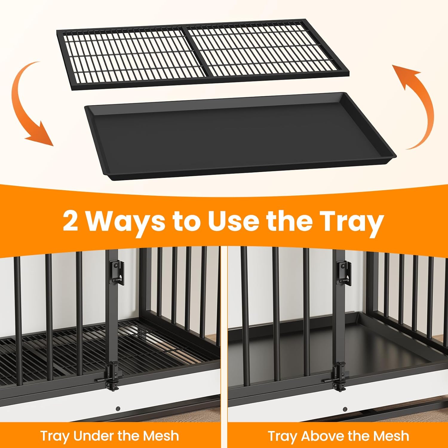 Dog Crate Furniture, Dog Crate End Table for Medium and Large Dogs,Wooden Cage Kennel Furniture Indoor, Modern Dog Crate with Multi-Purpose Removable Tray, Double-Doors Dog Furniture, White