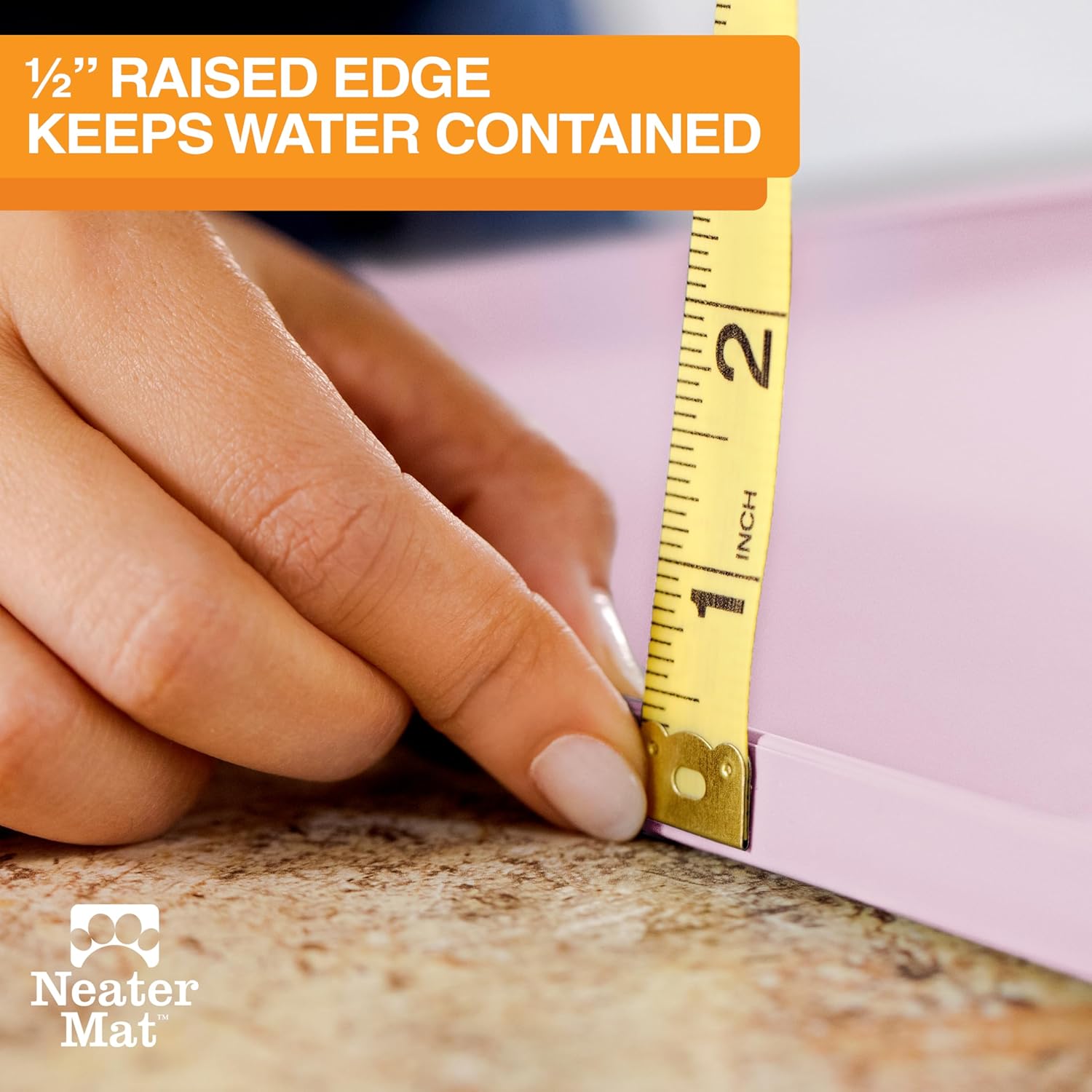- EXTRA-HIGH RAISED EDGE: Dog water bowl mat measures 16” x 10” with a ½ inch raised edge. Having an anti-spill edge helps contain the water on the pet mat and prevent run-off. Cat or dog feeding mat easily fits two small sized bowls.