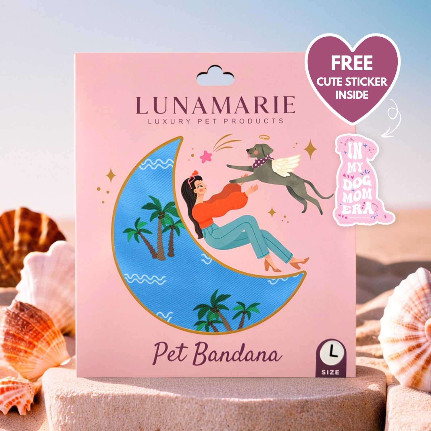 LunaMarie - Luxury Pet Birthday Bandanas -Premium & Silky Poly Fabric | 100% Handmade | Custom Shape Dual Layered (Playa Azul, Small)