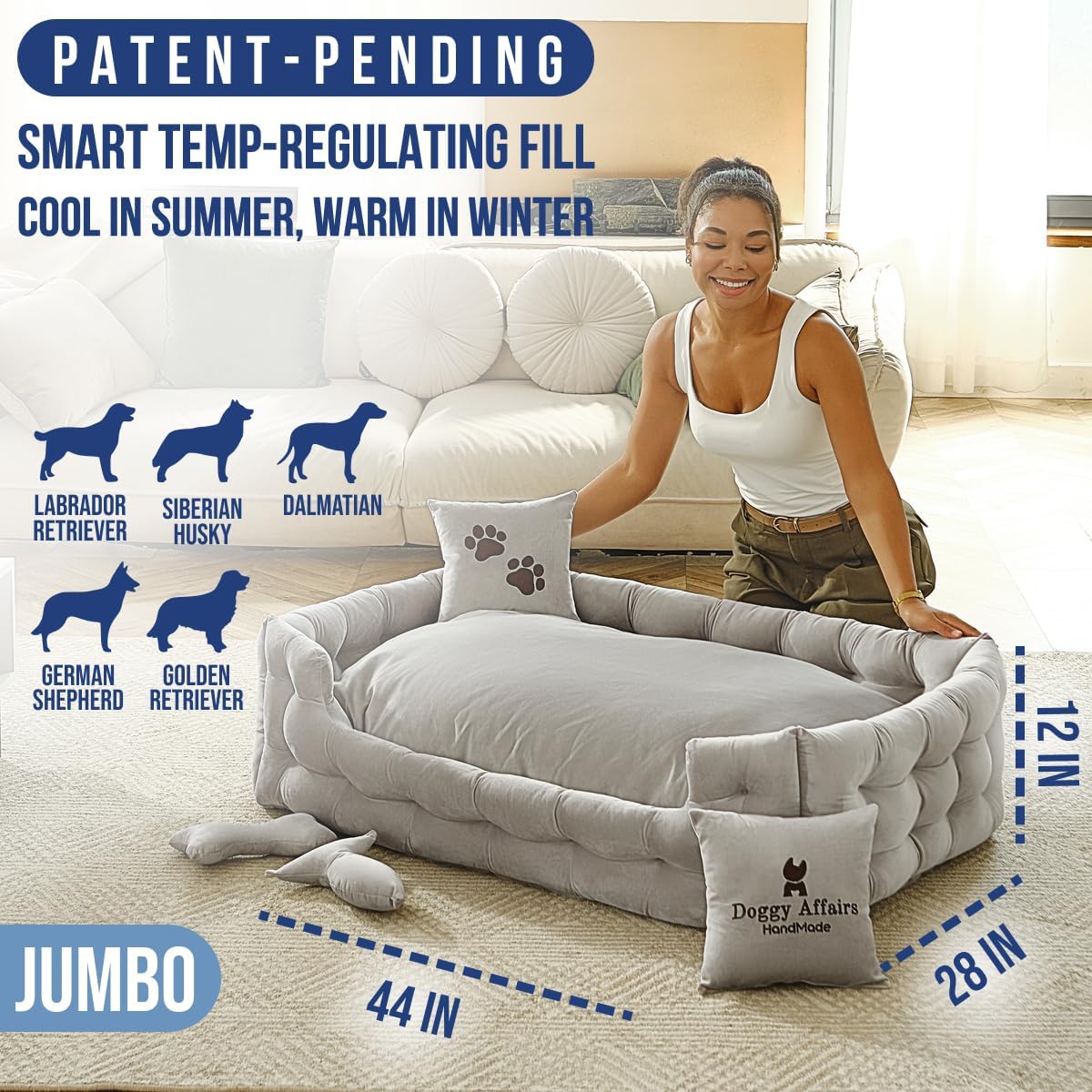 - ECO-FRIENDLY LUXURY LOVED BY 3,000+ DOG PARENTS: Filled with temp-smart fibers made from 5M+ recycled bottles. Tested by 500+ rescue dogs for durability, comfort, and anxiety relief — proven zero-flattening support.