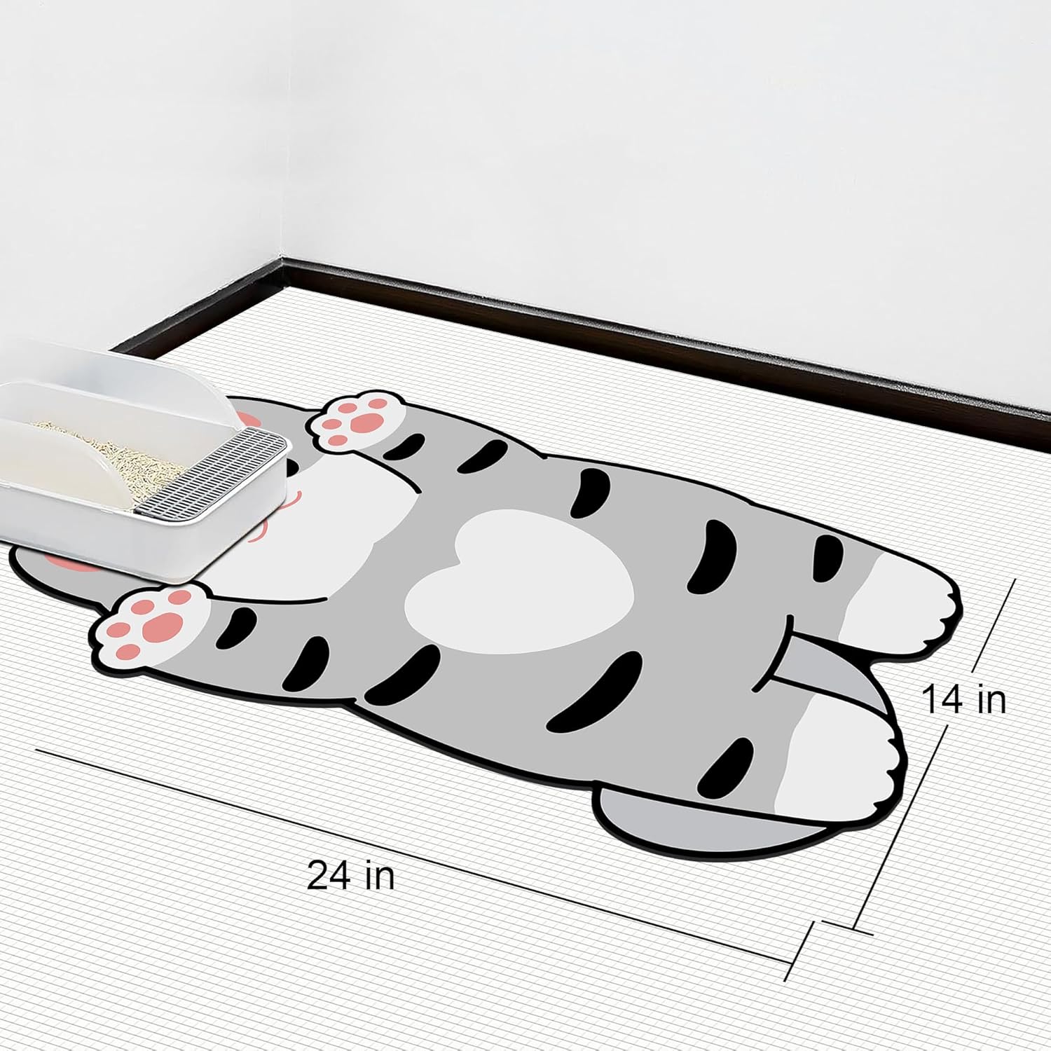 Cat Food Mats for Indoor 24"x14" Cat Feeding Bowl Mat Absorbent Quick Dry Mat Pet Feeding Mat (Grey)