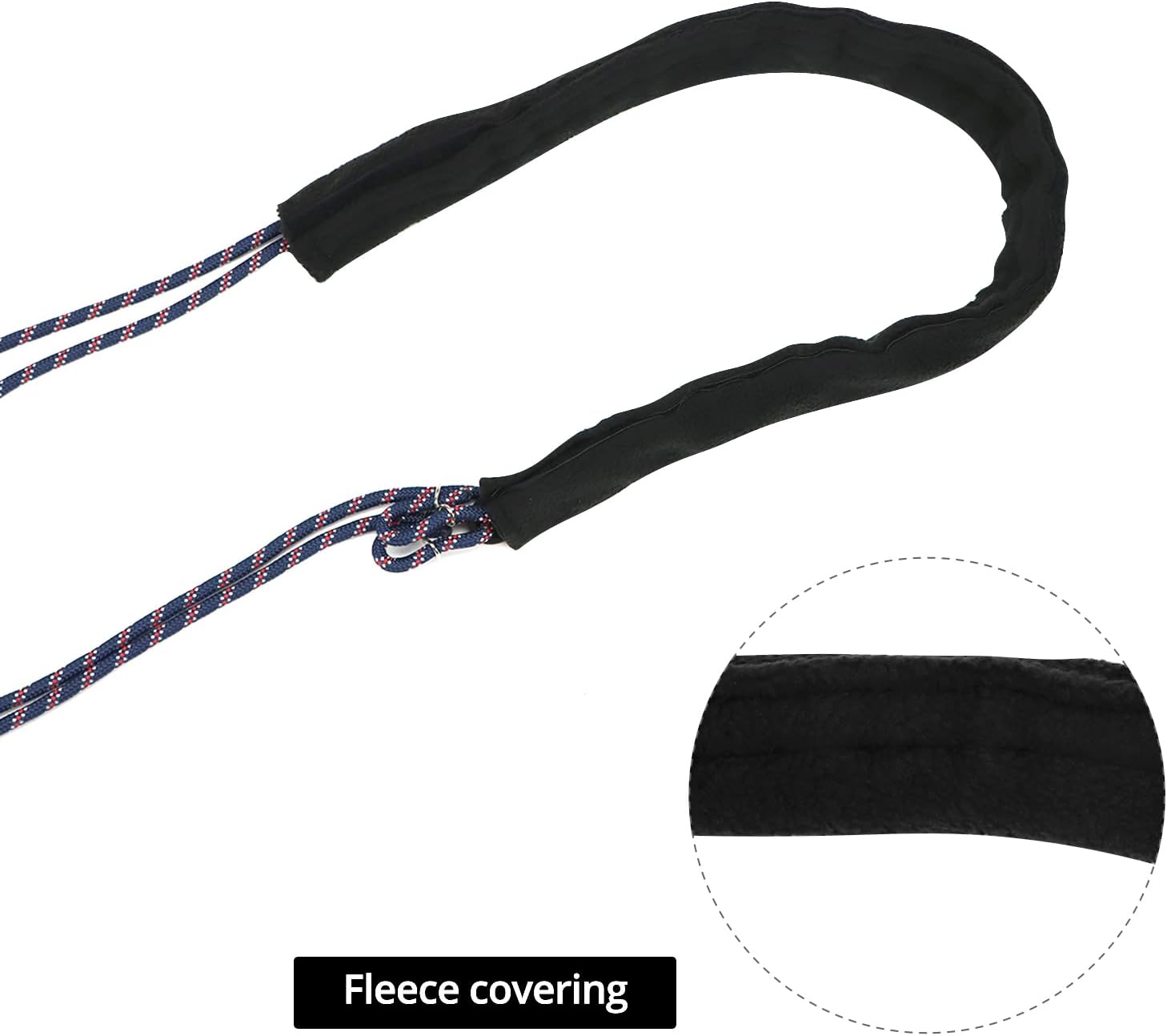 QWORK Adjustable Horse Training and Lunging Aid with Rear Fleece Cover, Navy/Red, Encourages Proper Head Carriage and Comfortable Stretching, Durable Braided Nylon Rope with Metal Clips,