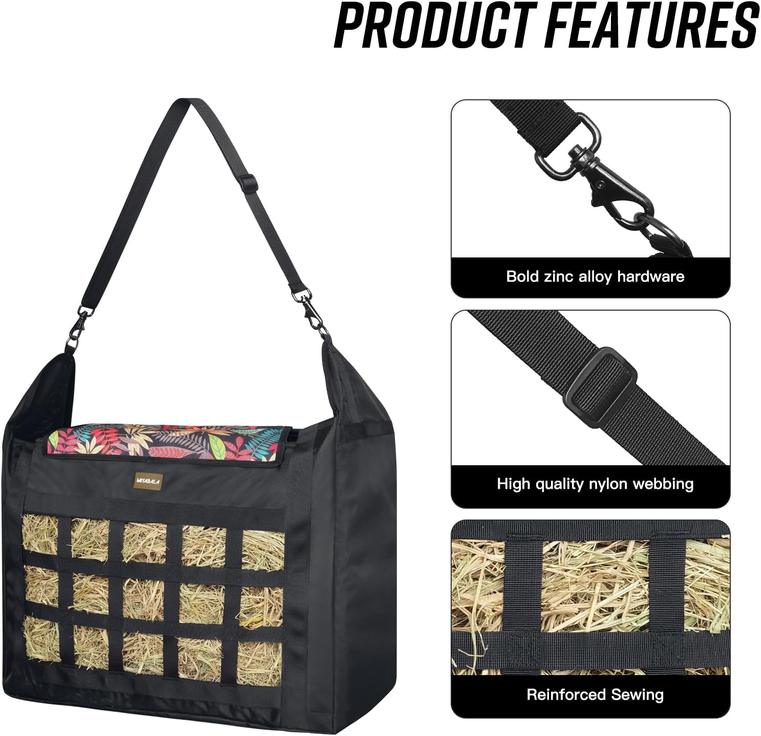 Hay Bag for Horses,Slow Feeder for Horse/Donkey/Goat, Premium 1680D Oxford Cloth,Easy to Fill and Hang with Extra Large Opening(Leaf)