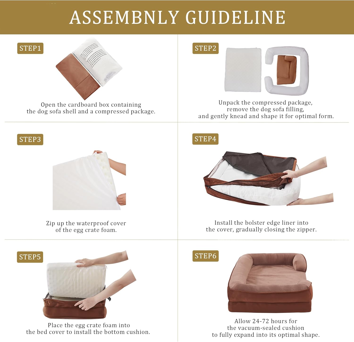 - Suitable Size: Suitable for All Breeds: 48"W x 35"L x 8"D; Sleeping surface: 39.5"W x 31"L (Up to 120lbs); When selecting the product size, please pay attention to the sleeping area. Please wait for 48 hours for full expansion to ensure optimal height and comfort before using.