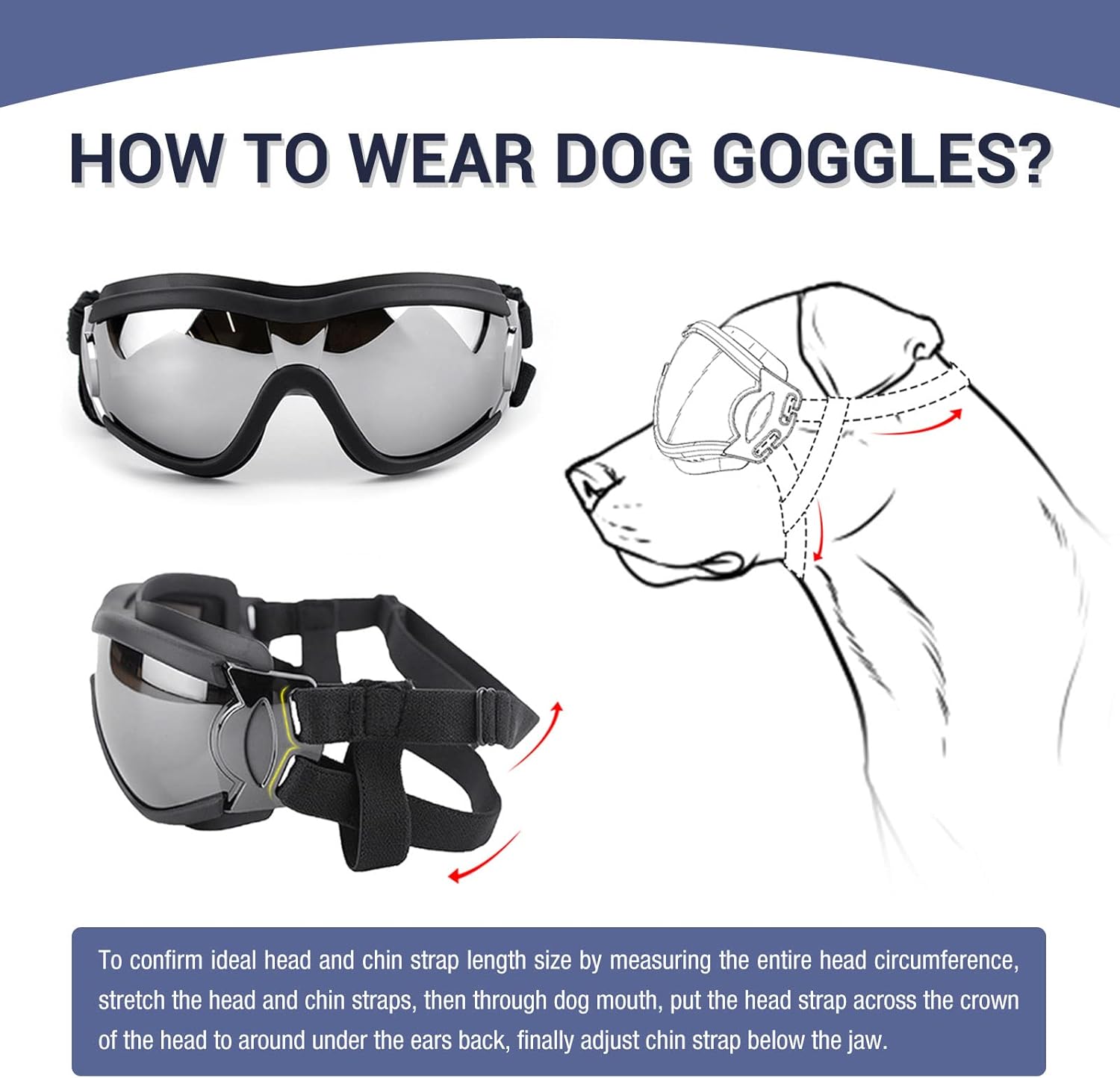 Pack of 2 Dog Goggles Dog Sunglasses for Medium to Large Breed Anti-UV Eye Protection with Adjustable Straps- Silver