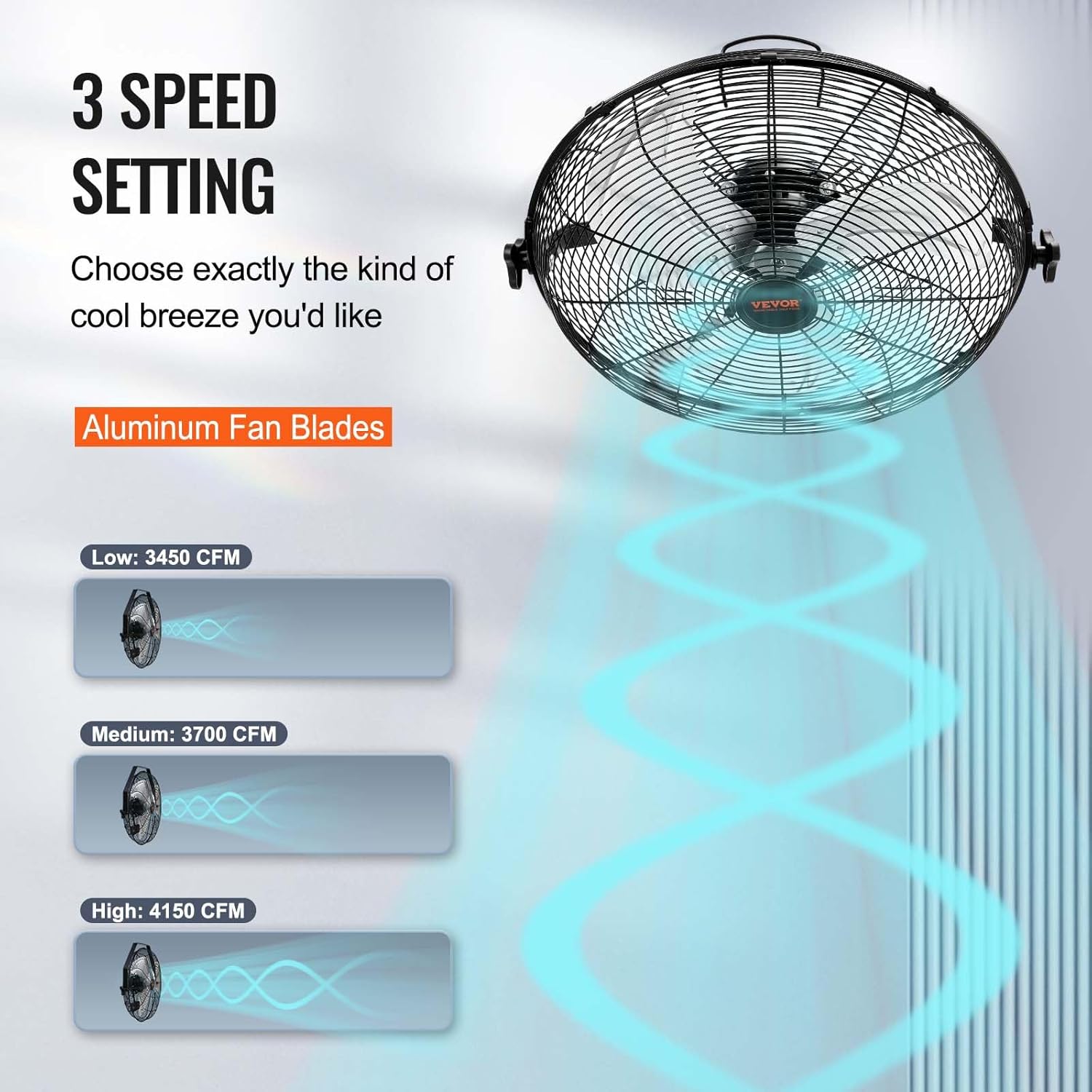 - Move Lots of Air: The metal pull-string is convenient for you to control 3 speeds. Performance is rated at a maximum of 4150 CFM with a reach of around 30 ft. Escape your air-conditioned cave and enjoy the outdoors, even in peak heat.