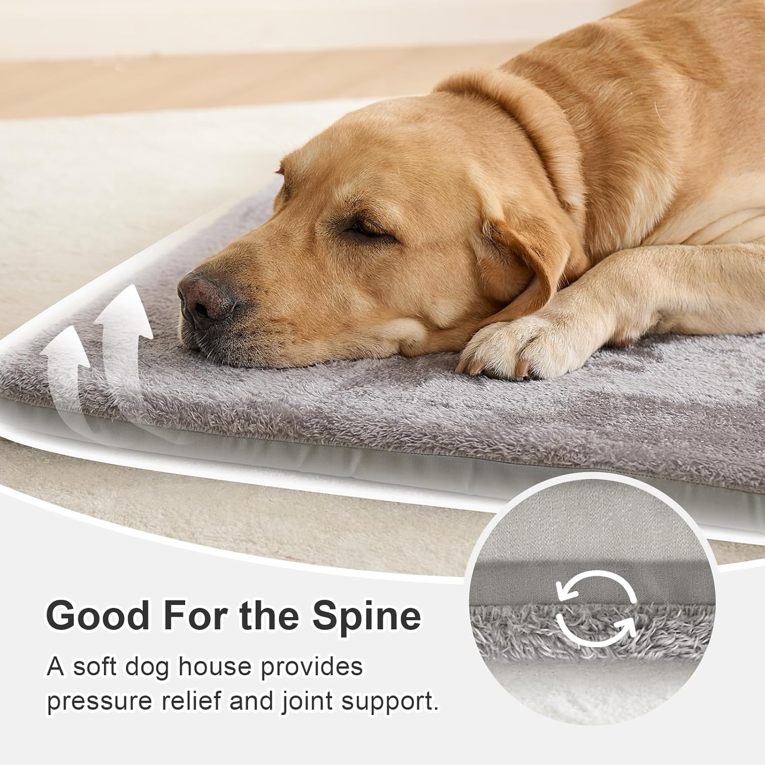 - Material Design: The dog house indoor is made of special sponge, sturdy & durable. The outer surface is high density oxford cloth, which is easy-clean. The double-sided inner pillow, filled with PP cotton, is plump and suitable for four seasons