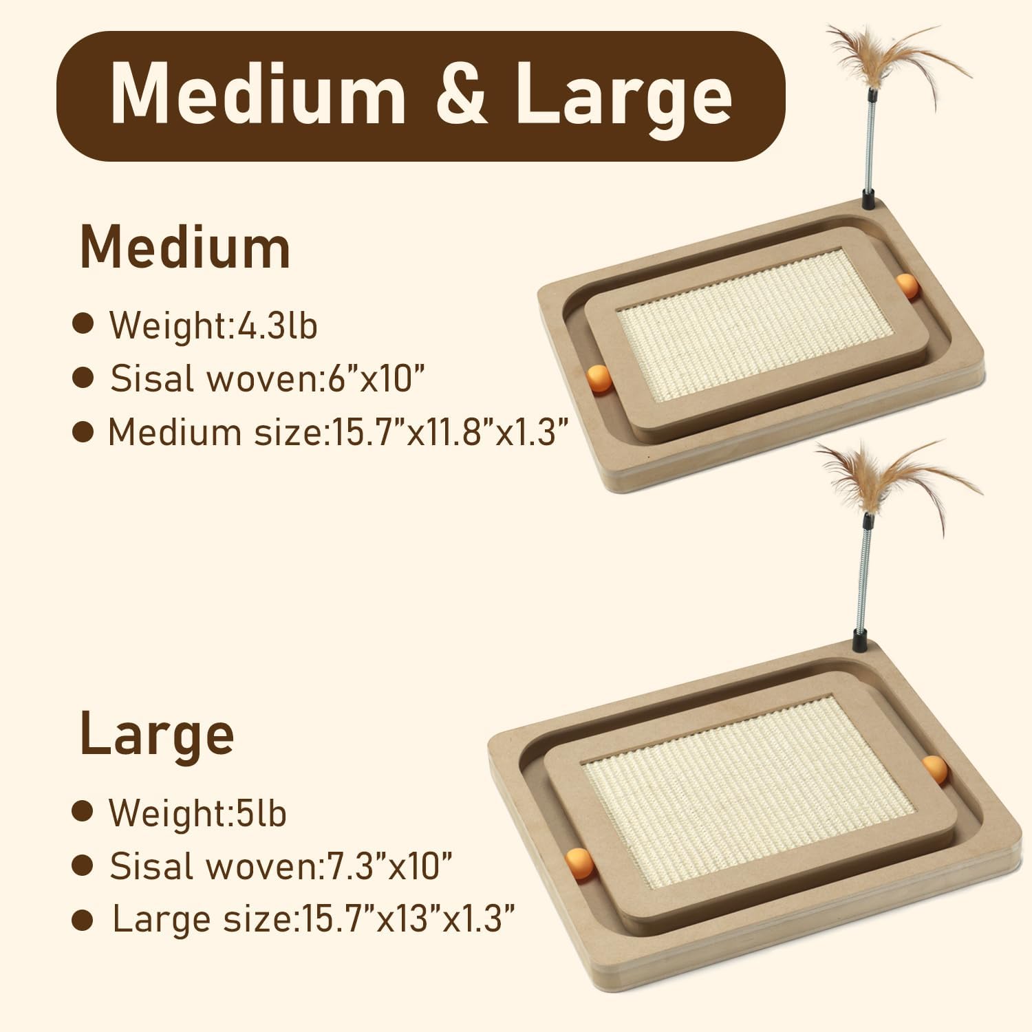 - Large Size:Scratcher toys size:15.7*13*1.4inches.Weighs 4.97 pounds.Perfect for cats of all sizes to scratch and play.Please put it in a place where the cat is usually active.