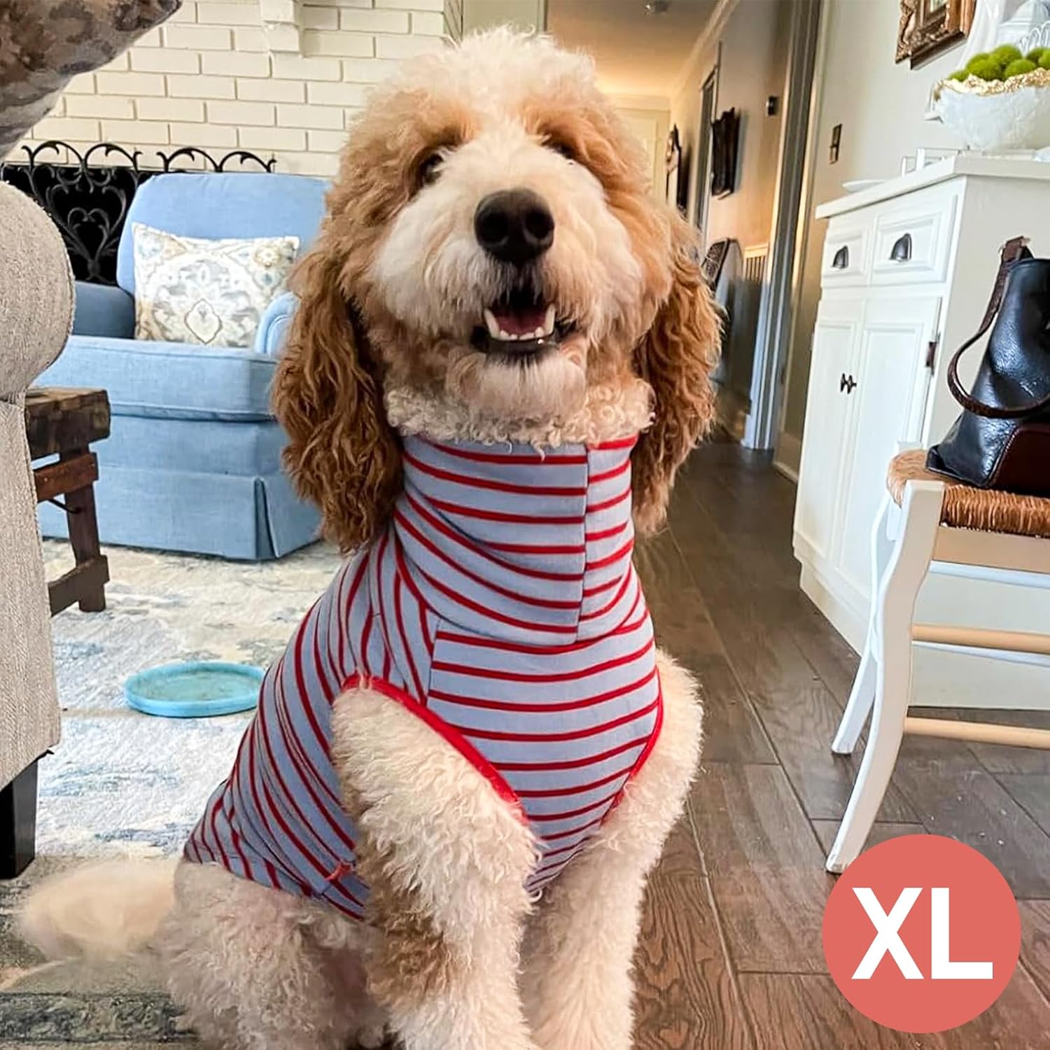 - Dog coat XL, fits 18.5" back, 19-23" chest. Please measure your dog's chest girth and back length according to our guide before buying. This fabric is stretchable. If between sizes, please size down