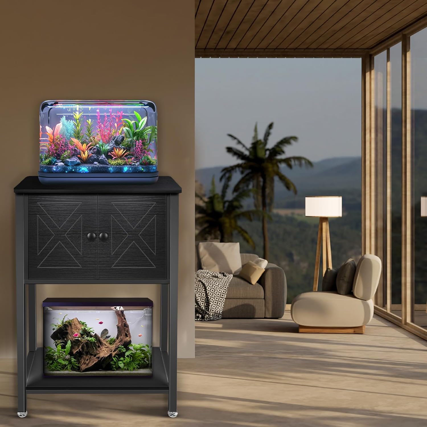 - Fashionable & Unique Design: Black fish tank stand feature a sleek modern design that complements a variety of home decor styles. It is not only a practical fish tank rack, but also an exquisite home decoration, bringing a distinctive and stylish atmosphere to your home