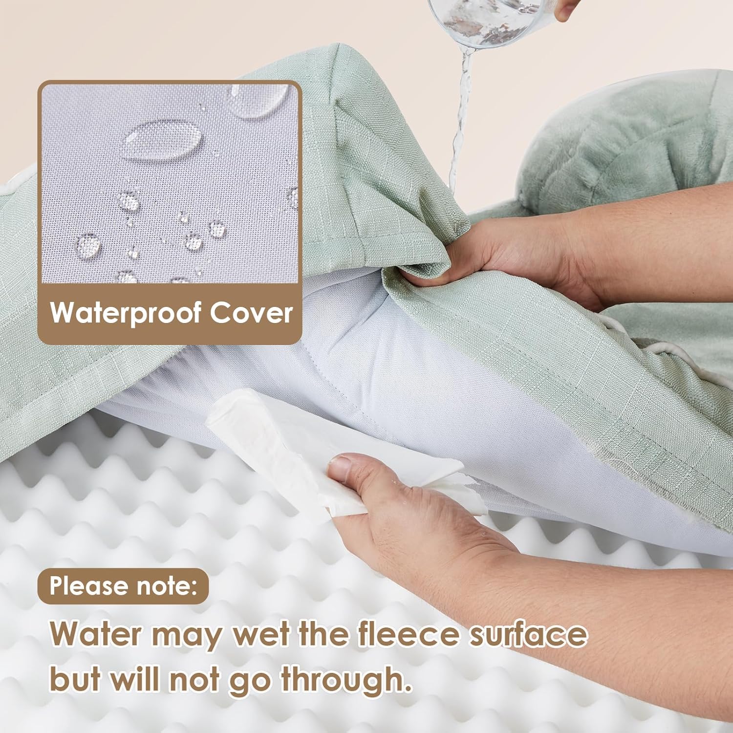 - WATERPROOF FILM and NON-SLIP BOTTOM: There is a waterproof film between the fleece surface and the bottom fabric that makes the dog bed waterproof. However, the faux linen on the side is not waterproof. A non-slip point on the bottom is not easy to slide, and keeps your dog bed steady.